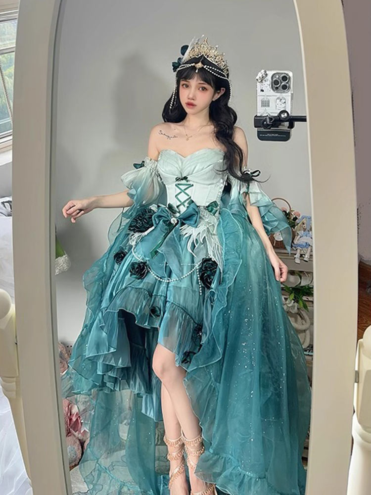 ローズギフトロリータイブニングドレスグリーンショート学生デーアダルトアートテストホストパーティーセレブ春
