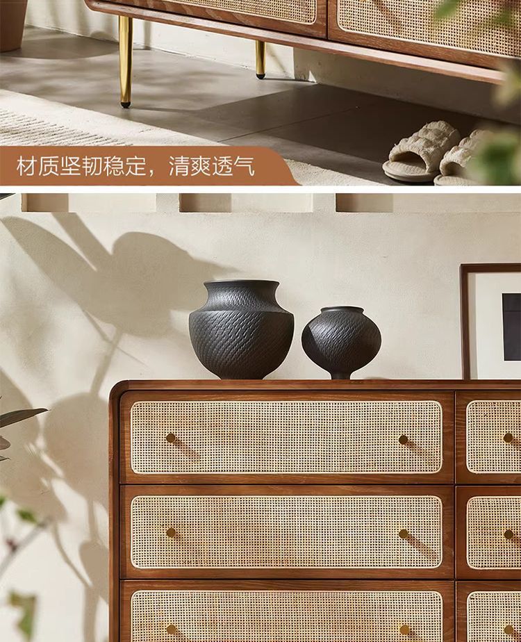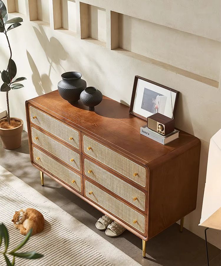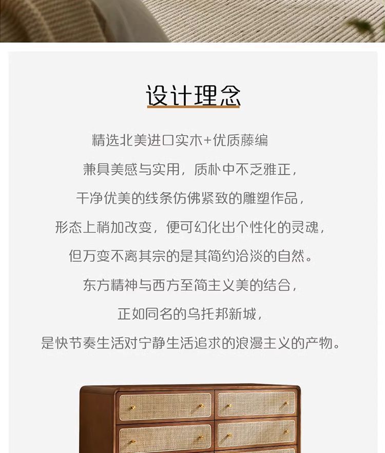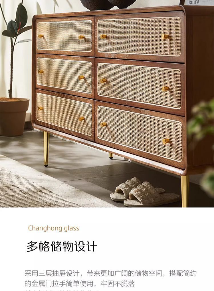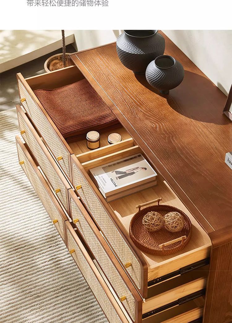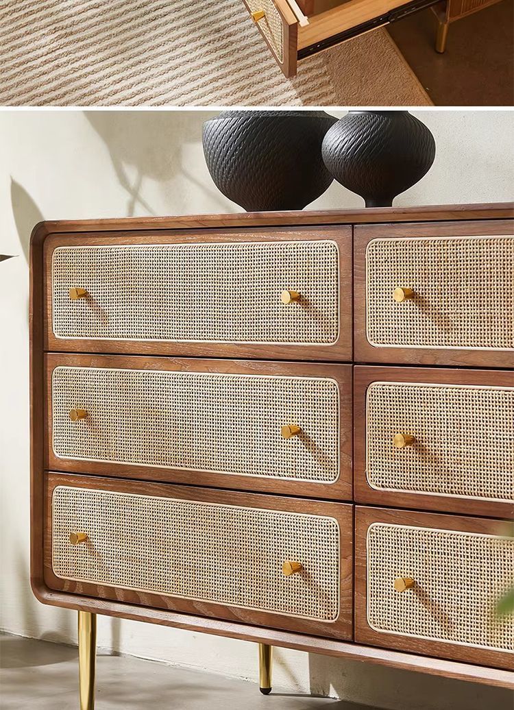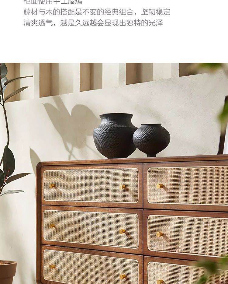 北欧無垢材 3、4、6 チェストシンプルモダンな収納キャビネット寝室多機能ベッドサイドテーブル籐収納キャビネット