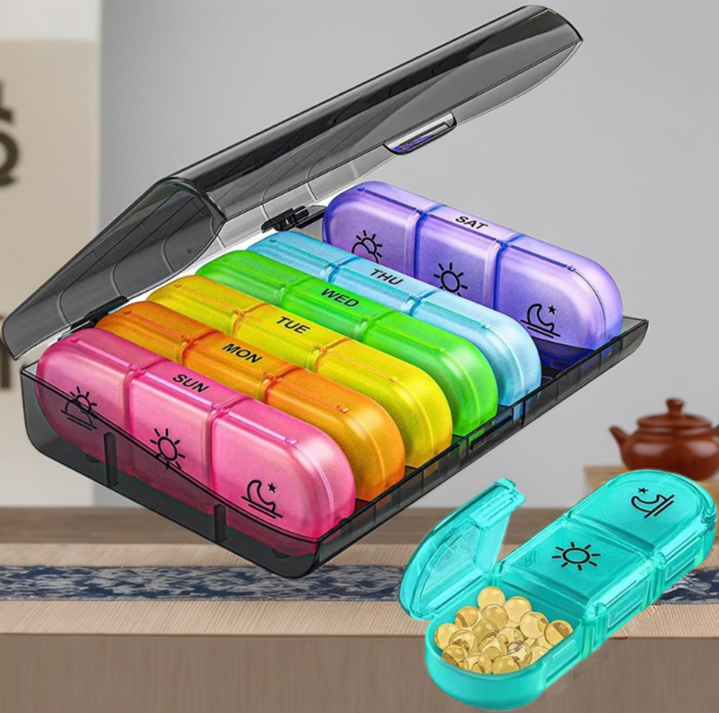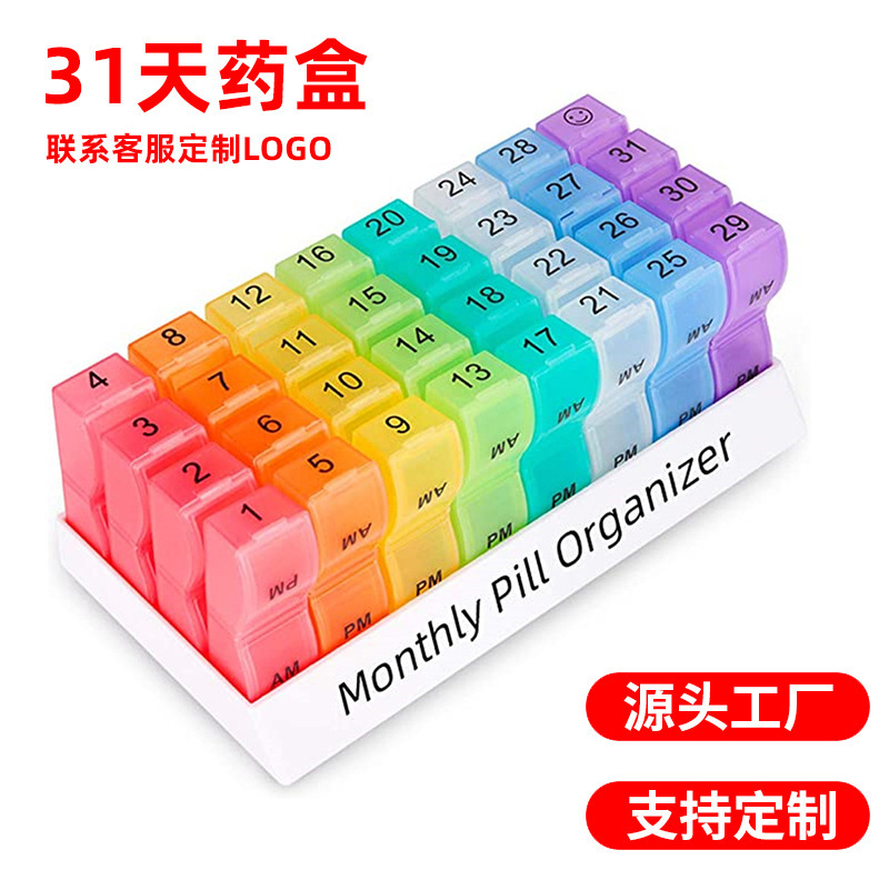 メーカーはカラフルなプラスチックの薬箱を提供しています。1月に31日間の薬箱を入れます。