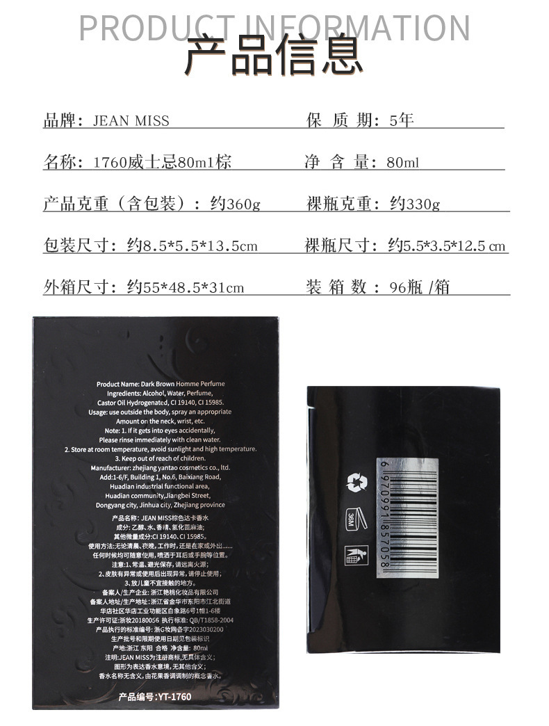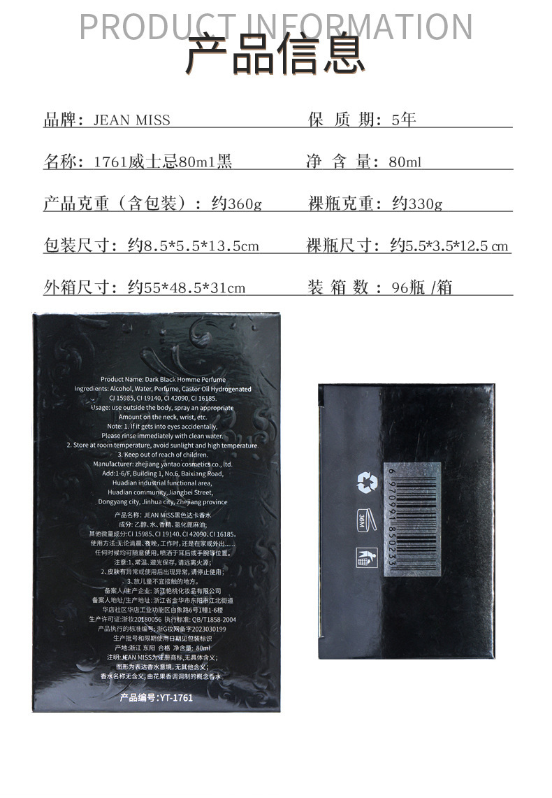 Jeanmissブランド男性香水清新自然紳士古龍水持続淡香水震え音爆金80ml