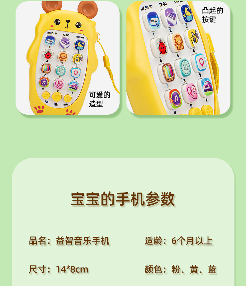 子供用おもちゃ携帯電話、赤ちゃんが噛むことができる歯固め、落下に強い、啓発教育、幼児早期教育、音楽携帯電話おもちゃ、卸売