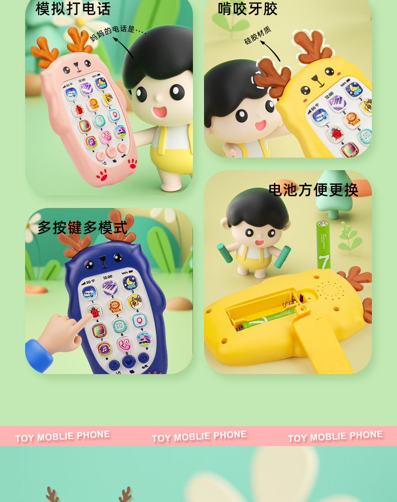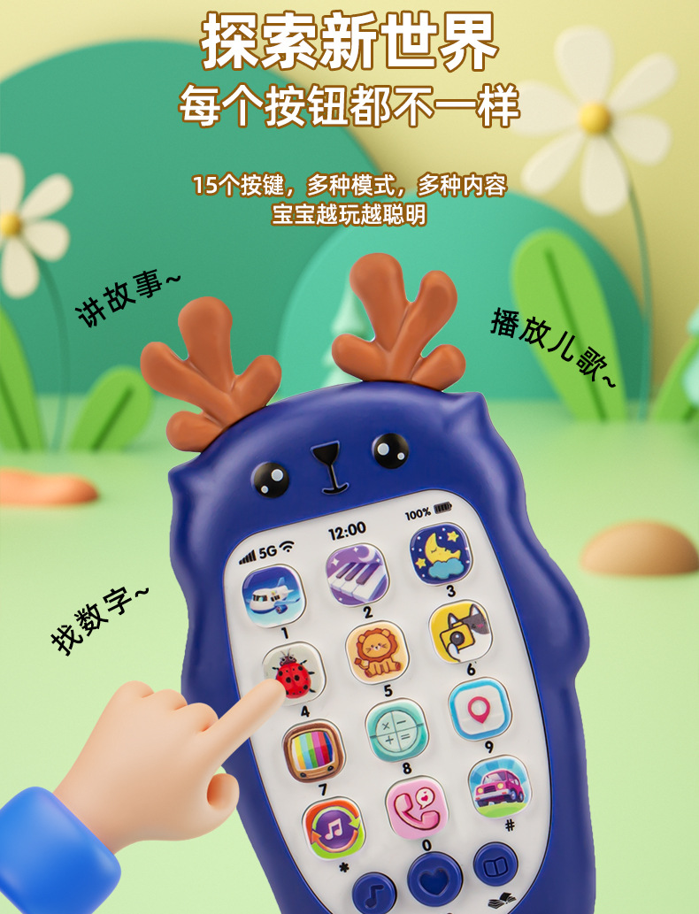 新款婴儿可咬牙胶宝宝仿真手机儿童音乐玩具早教益智故事机电话机