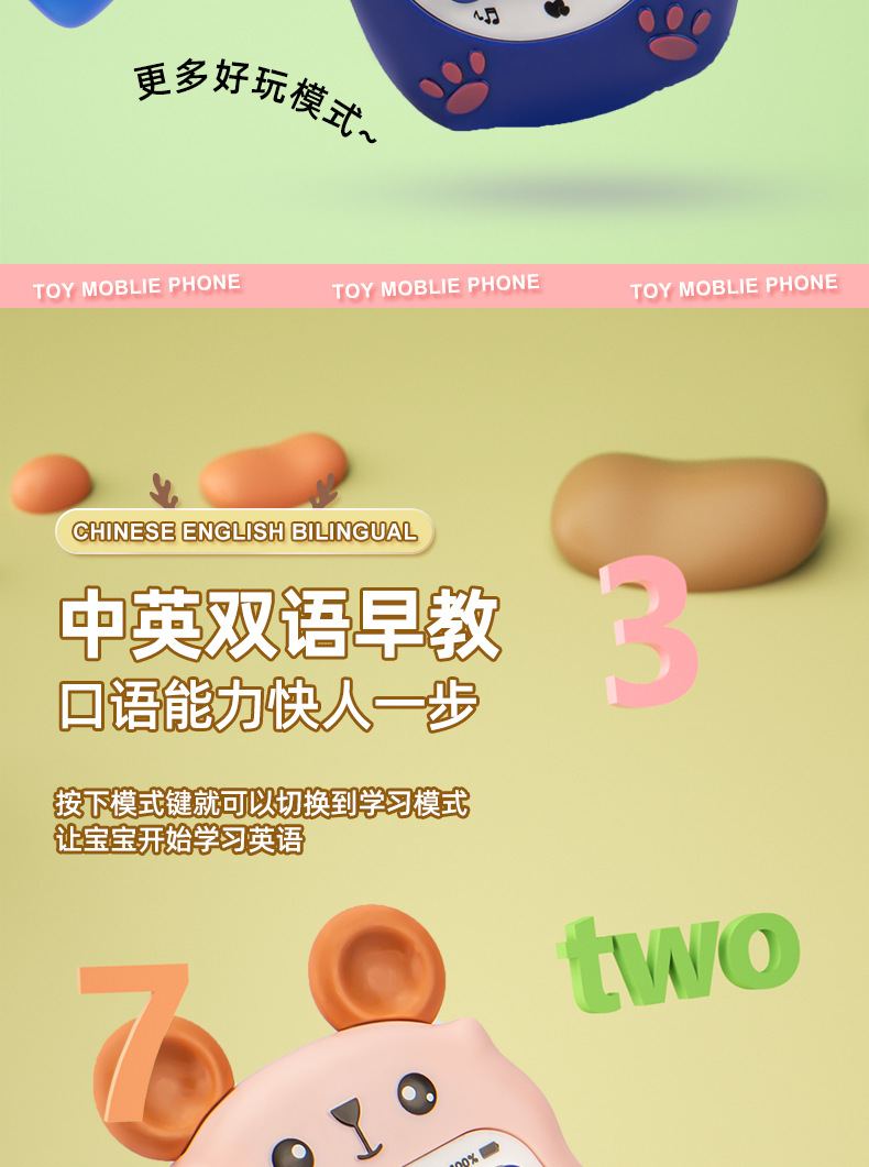漫画早教玩具携帯電話赤ちゃん知育バイリンガル啓蒙は多機能音楽シミュレーション電話機をかじることができる
