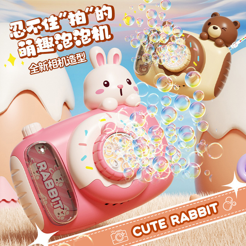 国境を越えた新しい子供用バブルカメラ、ガーリーなハート型バブルマシン、防水電動バブル吹きおもちゃ卸売
