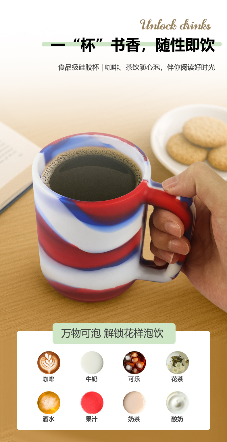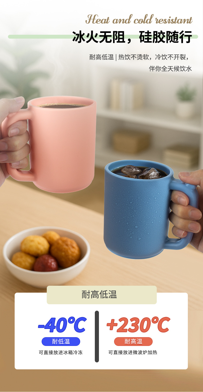 アマゾンの人気混色シリコンカップ食品級耐衝撃性耐高温大容量480mlシリコンカップ
