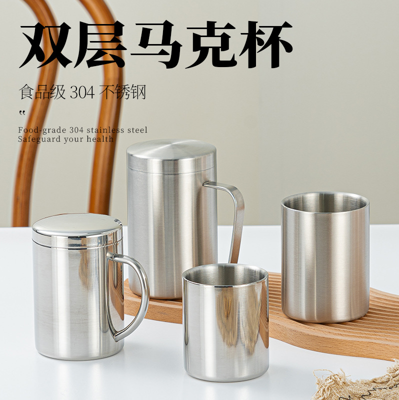 304不锈钢杯马克杯隔热防烫双层杯ins带盖水杯咖啡杯批发茶杯