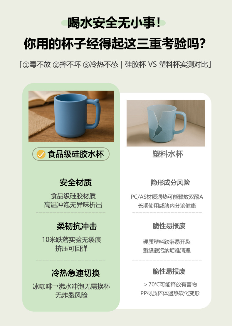 シリコーンウォーターカップミルクコーヒーマグオフィスホームウォーターカップホテルマウスウォッシュカップ食品グレードのシリコーンウォーターカップ