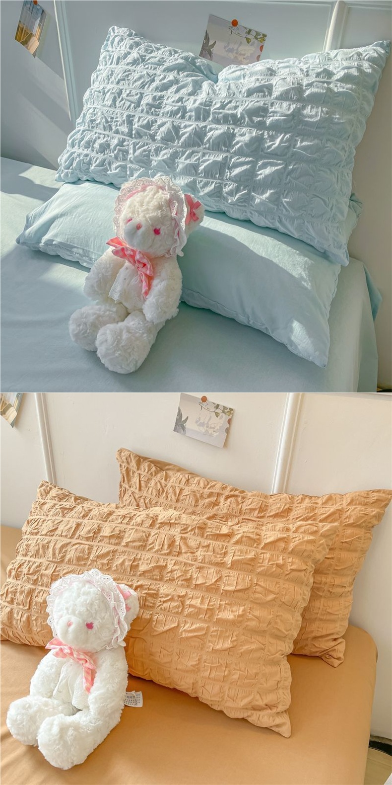 チェック柄バブル枕カバー - ターコイズ [2枚組],チェック柄バブル枕カバー カスタード [2枚組],チェック柄バブル枕カバー-キャラメル [2枚組],チェック柄バブル枕カバー 粉ミルク [2枚組],チェック柄バブル枕カバー - ミルクブルー [2枚組],チェック柄バブル枕カバー-ミルクパープル [2枚組]