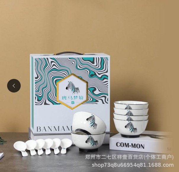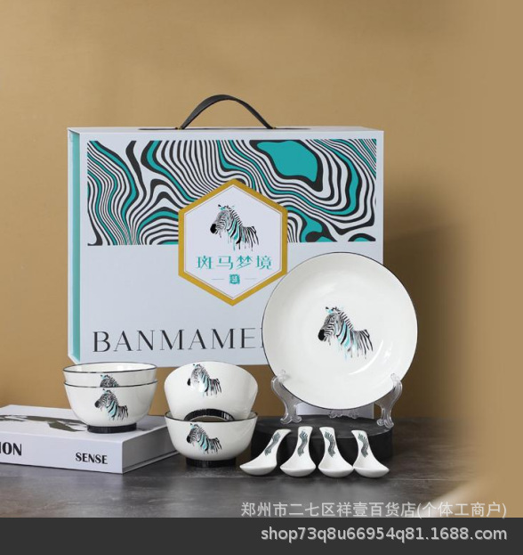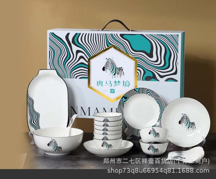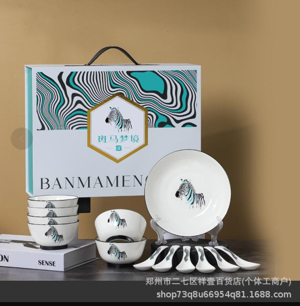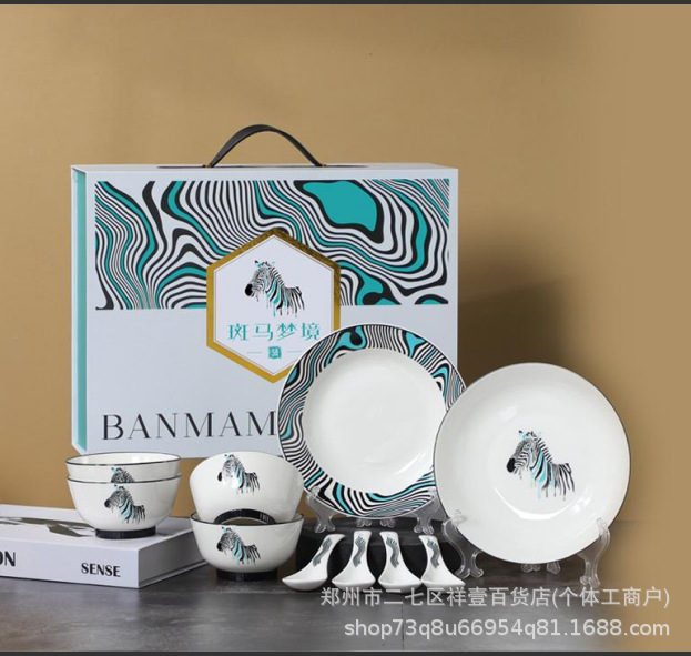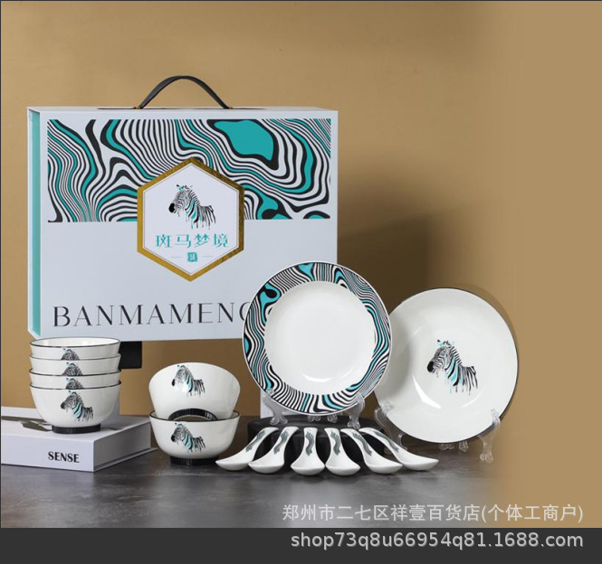 リーダーゼブラドリームセラミック食器セットオープニングイベント便利な福祉ギフト卸売実用的なボウル、プレート、スプーン