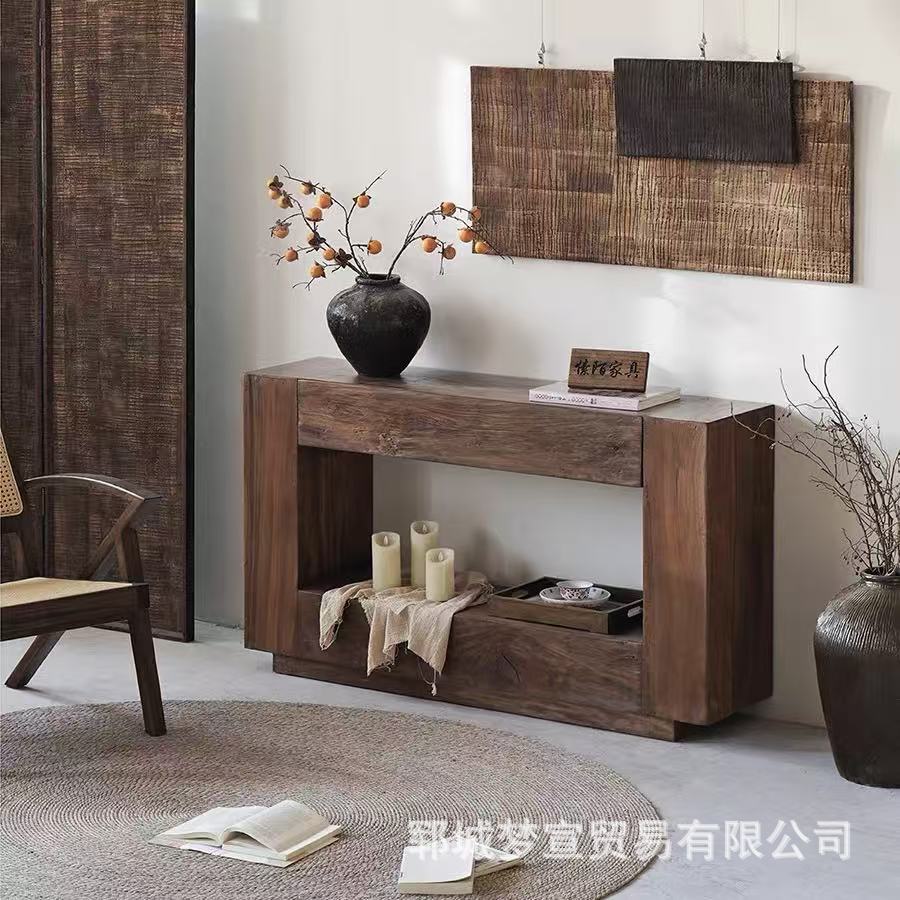 复古老榆木餐边柜客厅装饰入户玄关柜实木靠墙条案供桌储物柜案台