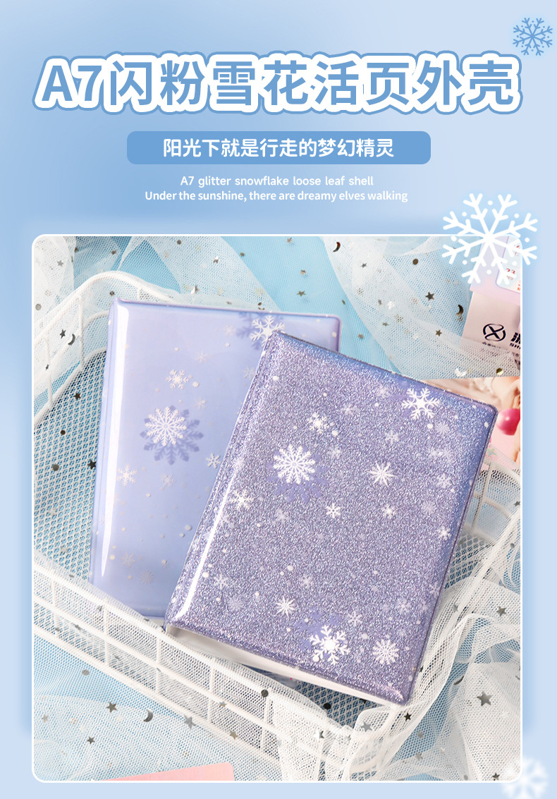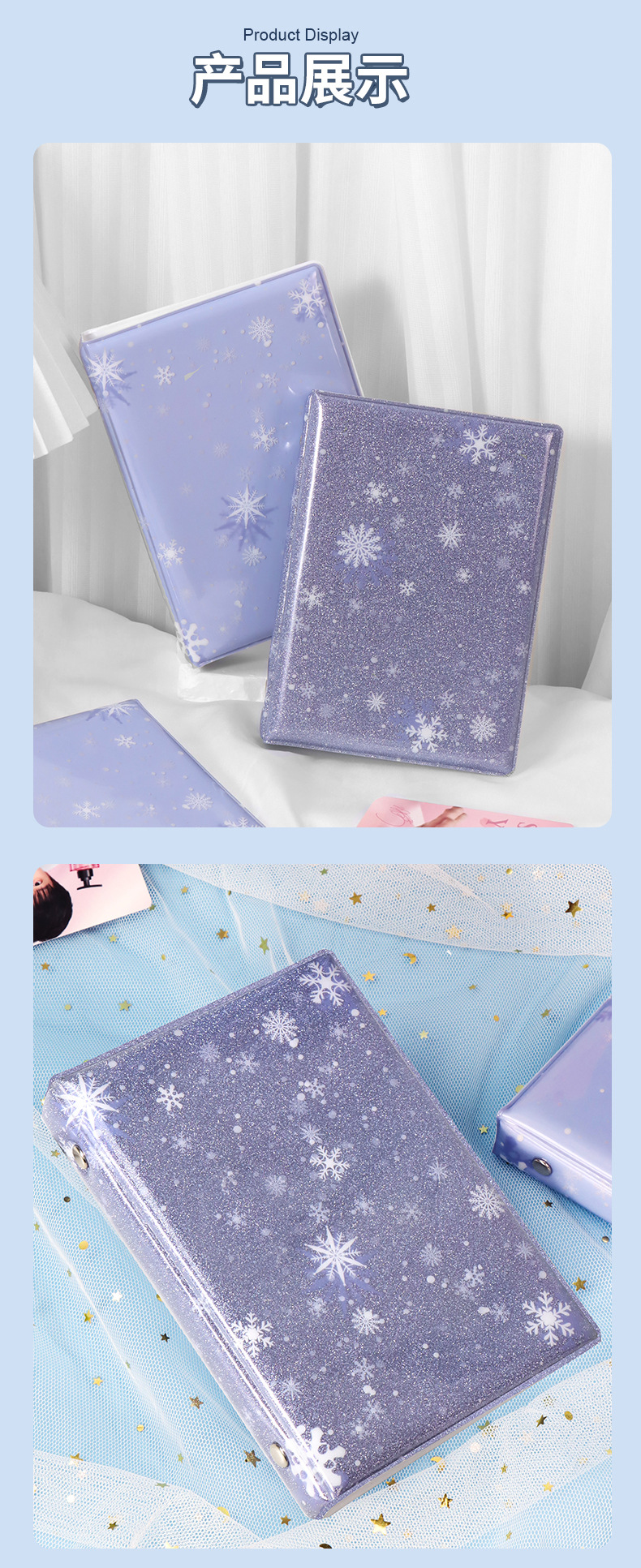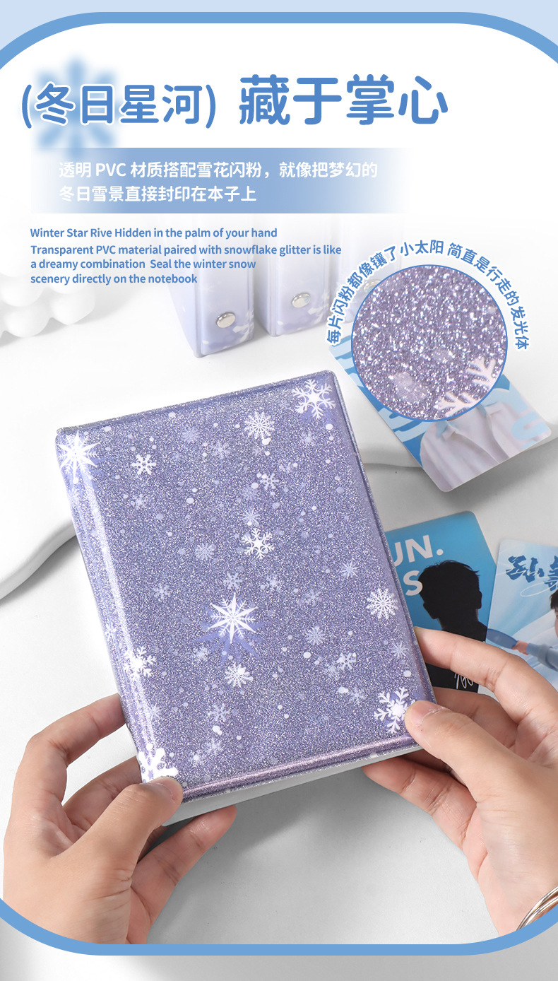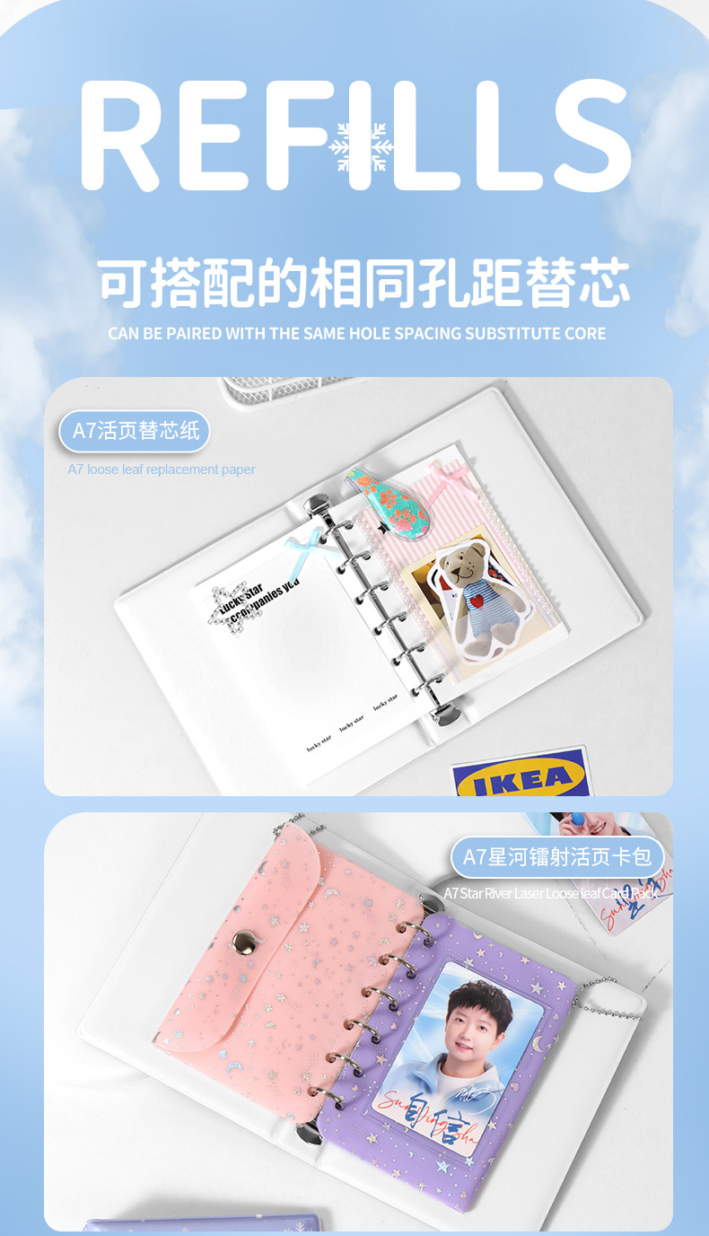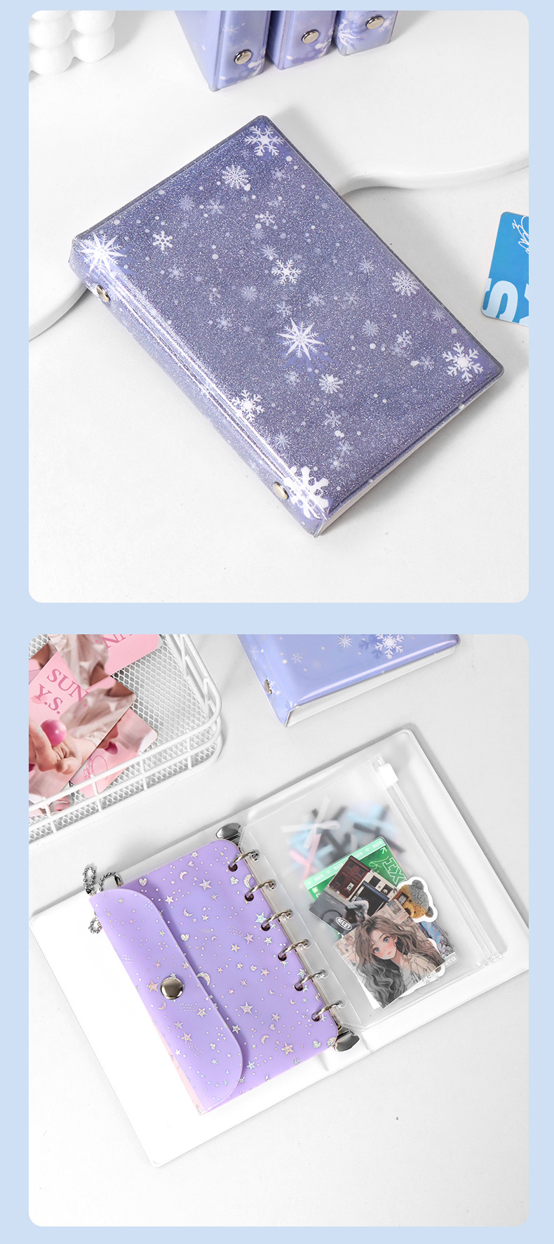 M 5バインダー本pvc透明カバーかわいい5穴キラキラ星三つ折り手帳携帯メモポケットノート