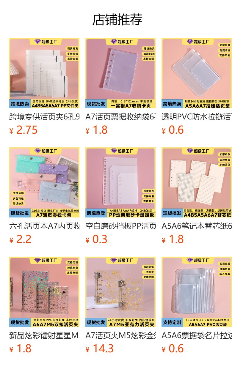 ブランクつや消しベゼル PP ルーズリーフ パーティション 6 穴コア内ページ透明 A4B5A5A6A7 ハンド アカウント パーティション ページ