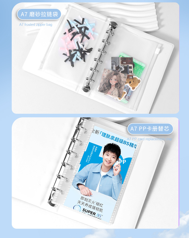A5ルーズリーフカードブック滑り止めカード4枚透明内芯袋プラスチックpp名刺袋3インチ写真収納袋