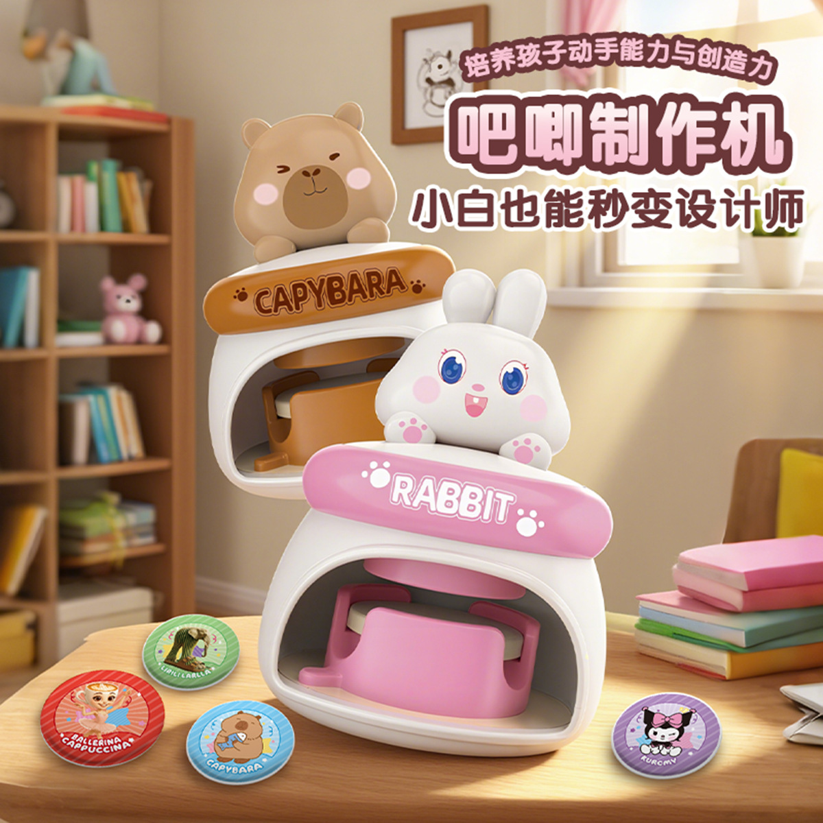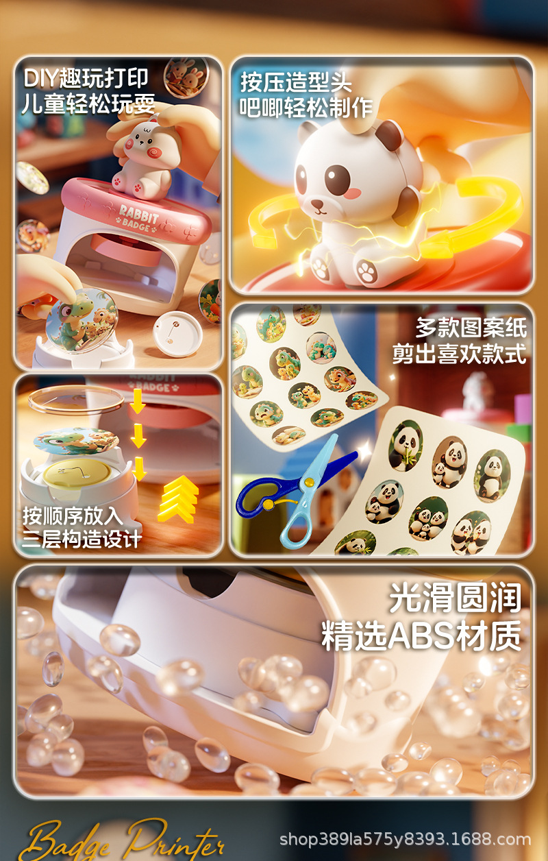 新款吧唧徽章机DIY儿童玩具徽章胸章制作机别胸针小学生自制徽章