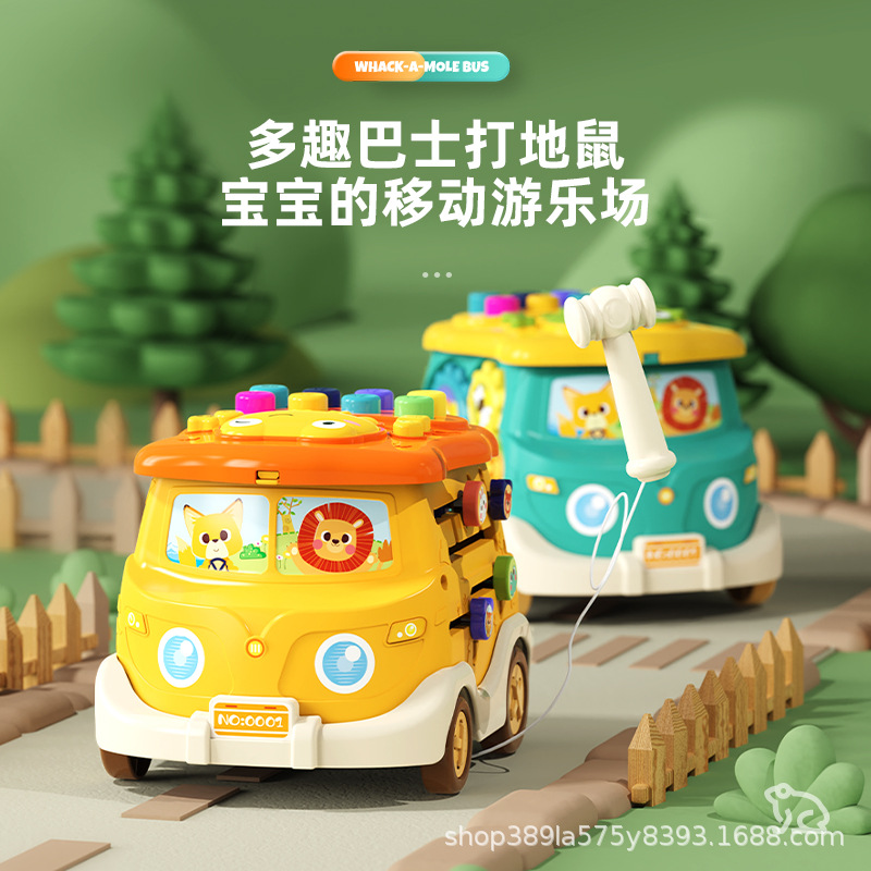 国境を越えた幼児向け知育早期教育バス車、六面太鼓、多機能たたき落としバスおもちゃ、漫画