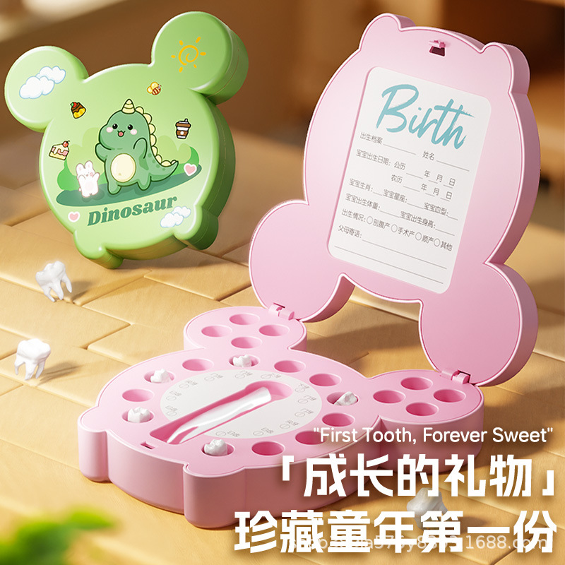 女の子の乳歯を記念するための国境を越えた子供用歯箱、赤ちゃんの歯の交換を記念する男の子用の歯の収納ボックス、漫画の置物