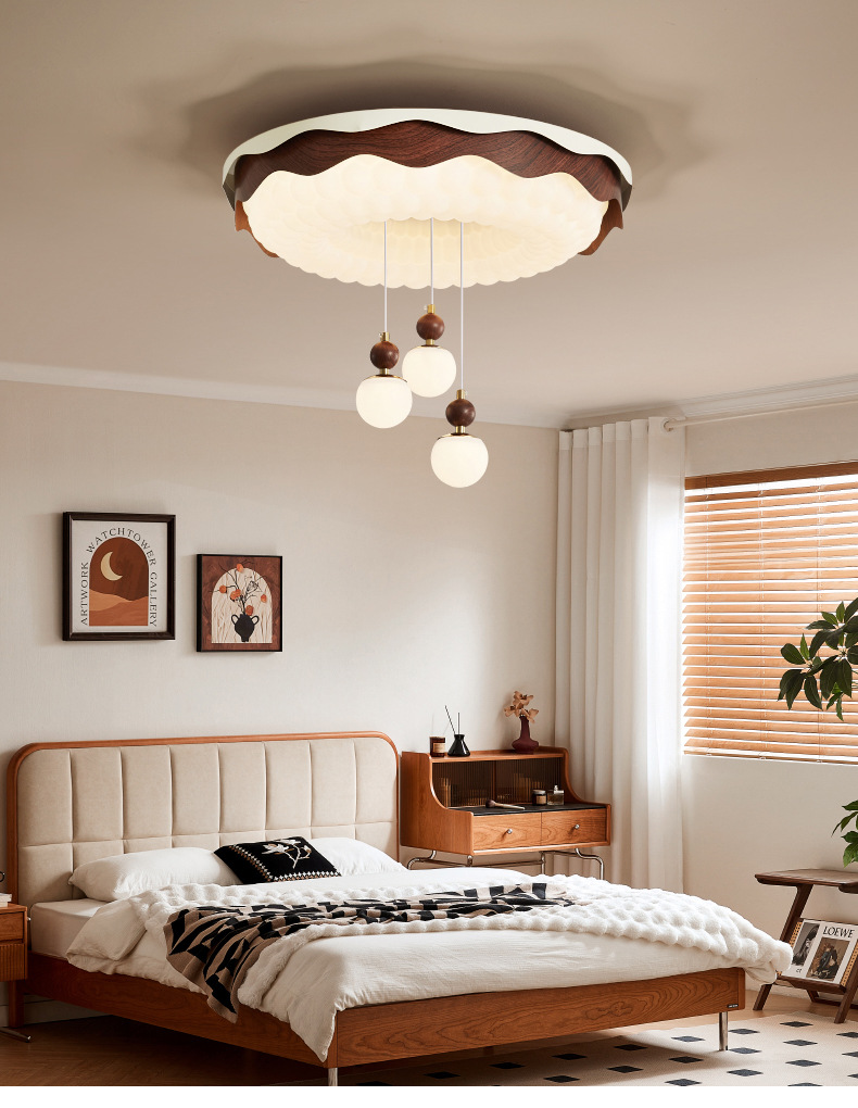 フレンチミッドセンチュリースタイルの寝室のシーリングランプレトロなクルミ木目ルームランプクリエイティブハンギングボールスタディルームマスターベッドルームランプ