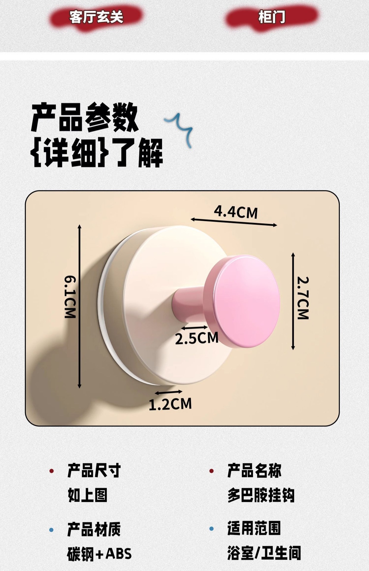 多巴胺挂钩卫生间吸盘挂钩免打孔无痕挂勾强承重粘钩门后墙面挂勾