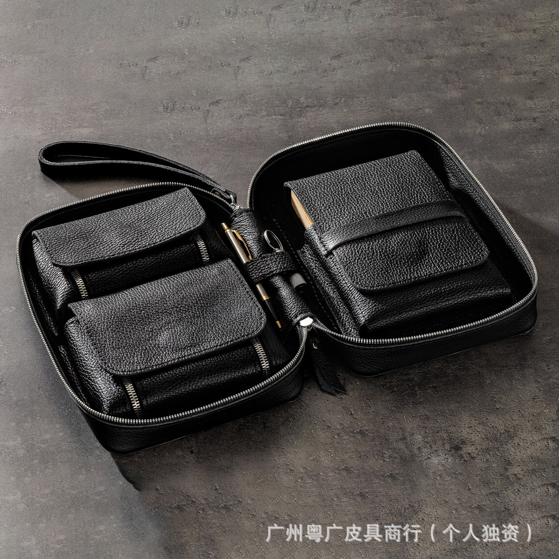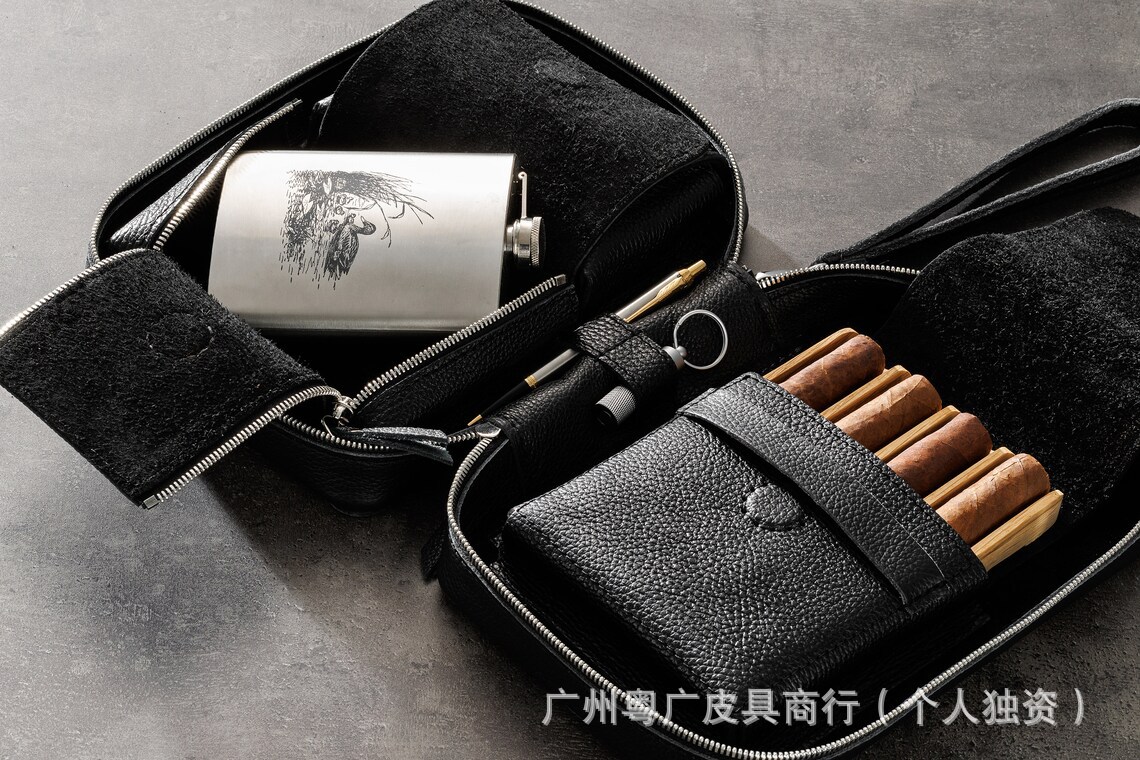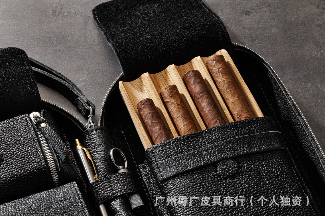 ヨーロッパとアメリカの新しいメンズ本革シガーボックス多機能ライチパターンポータブルシガー収納袋シガーレザーケース