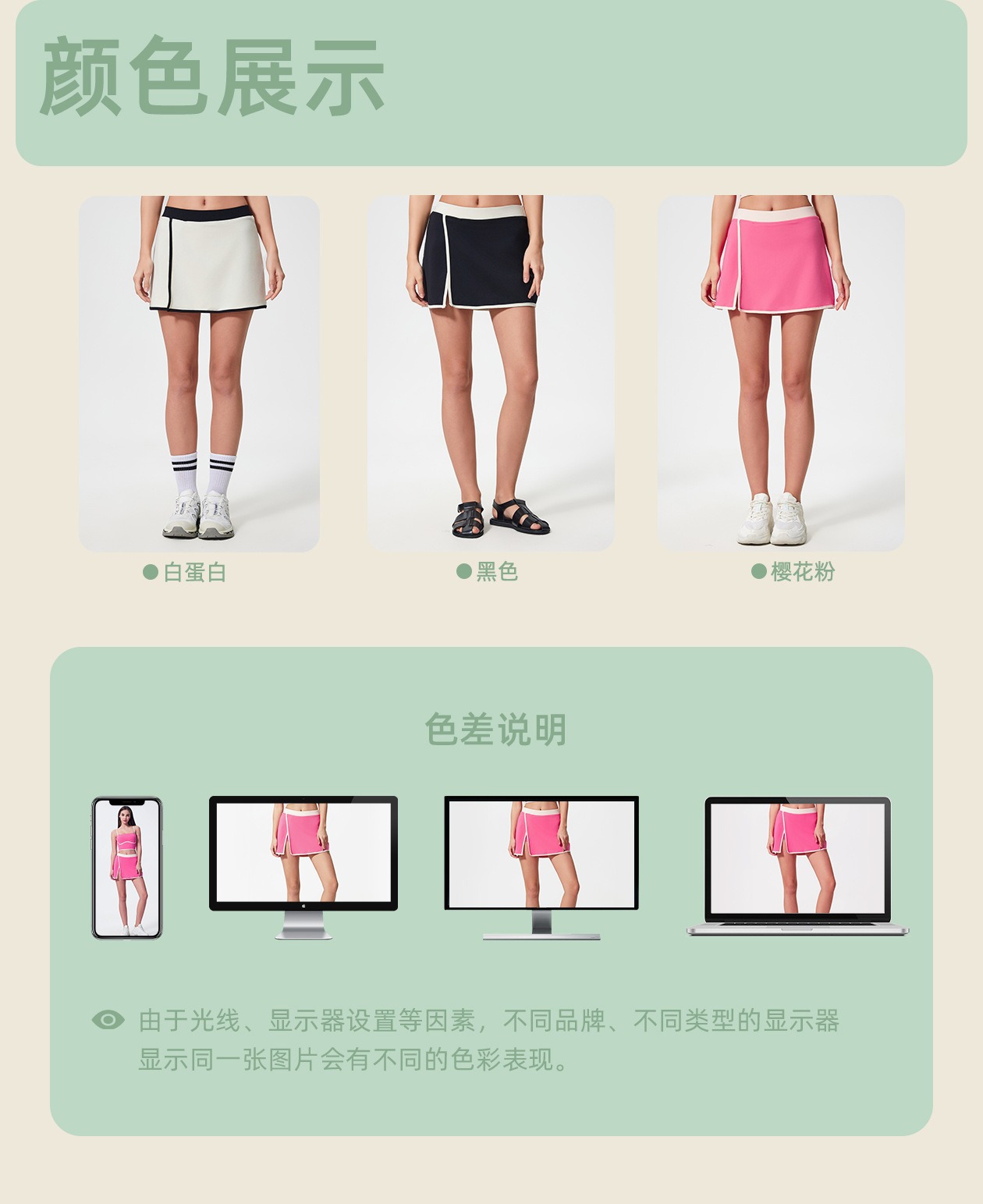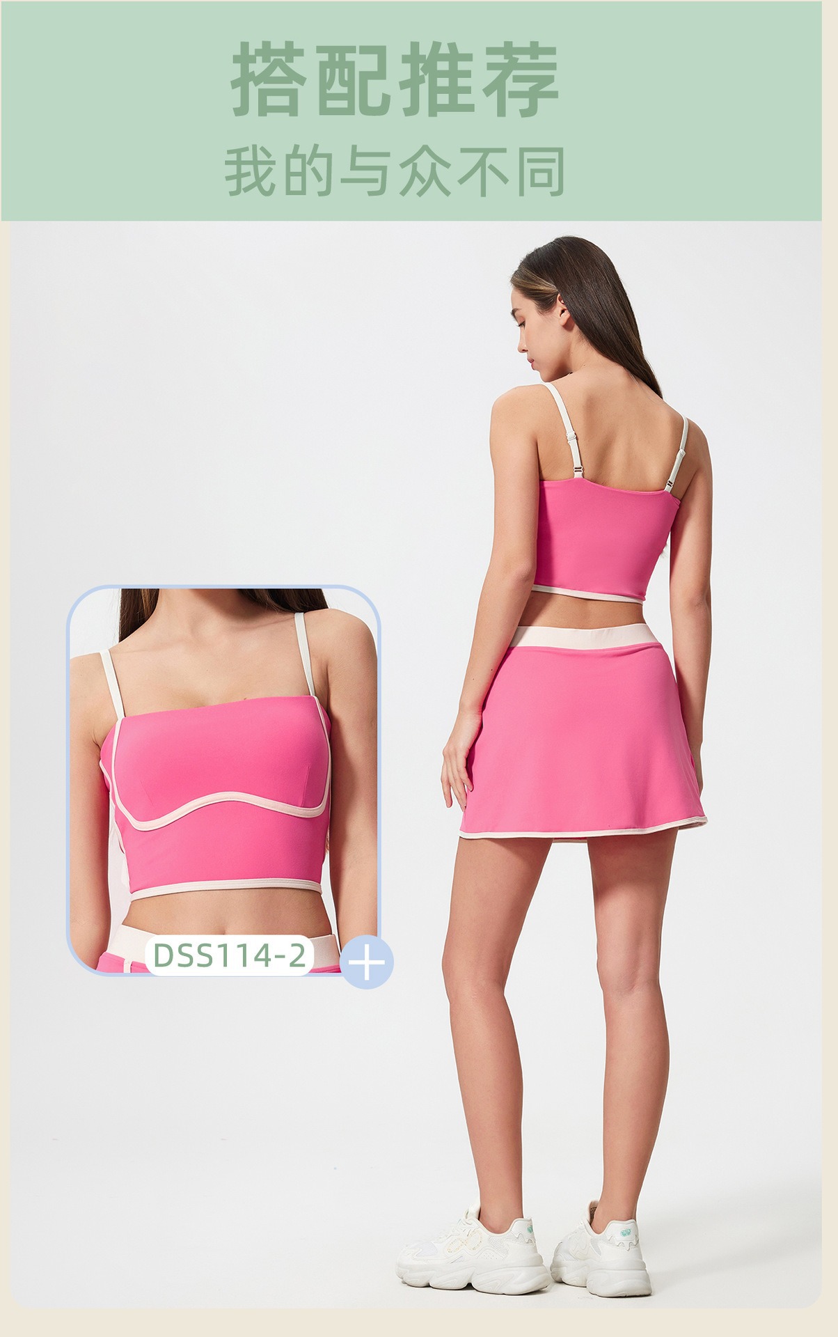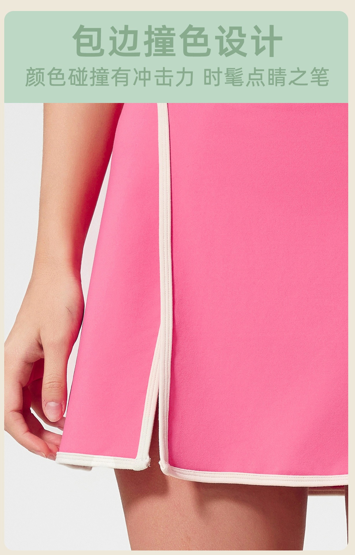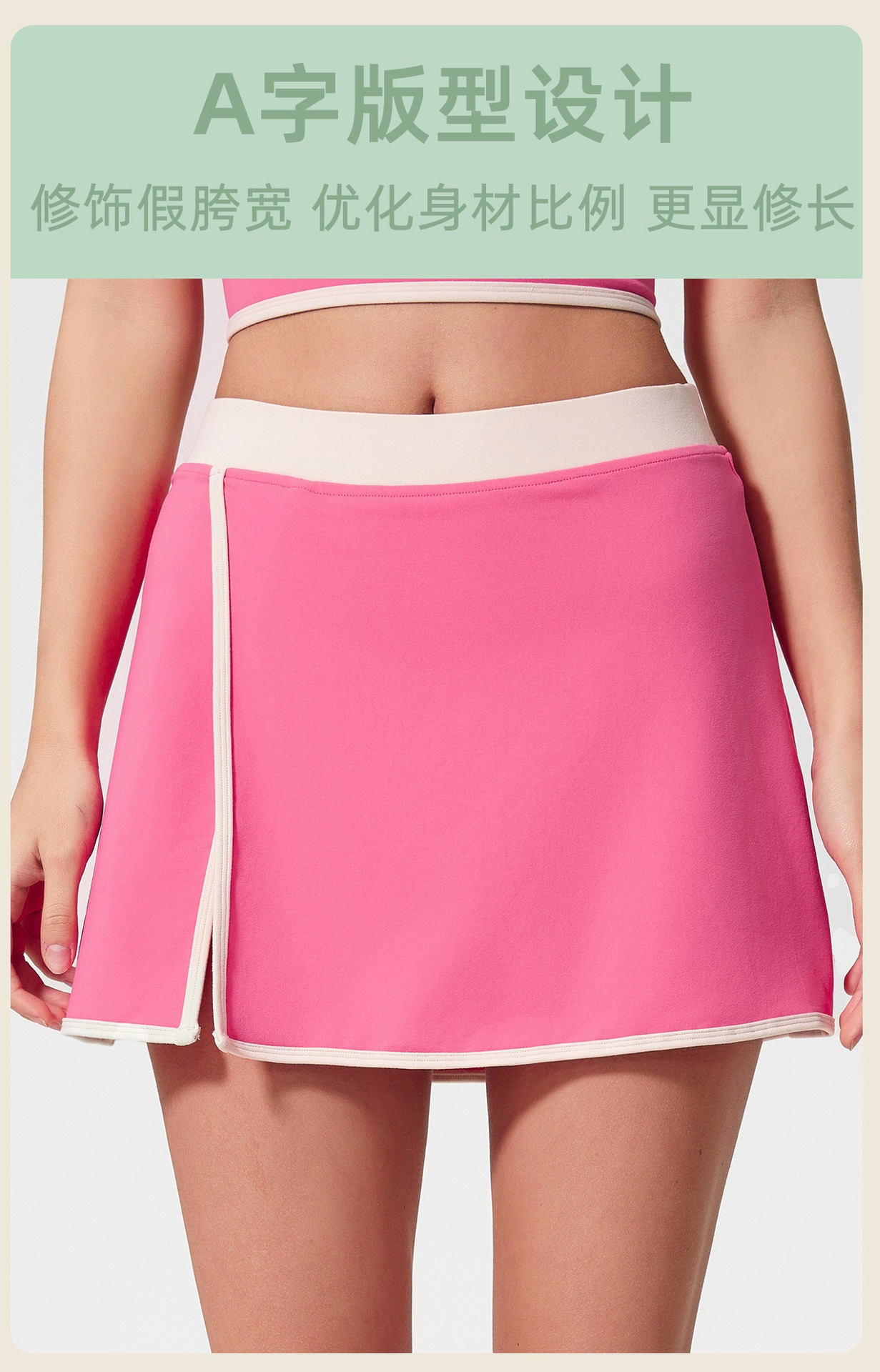 新しい夏のテニスヨガスカート、偽ツーピース、露出防止、ファッショナブルなコントラストカラー、フィットネススポーツスカート、女性用D25044