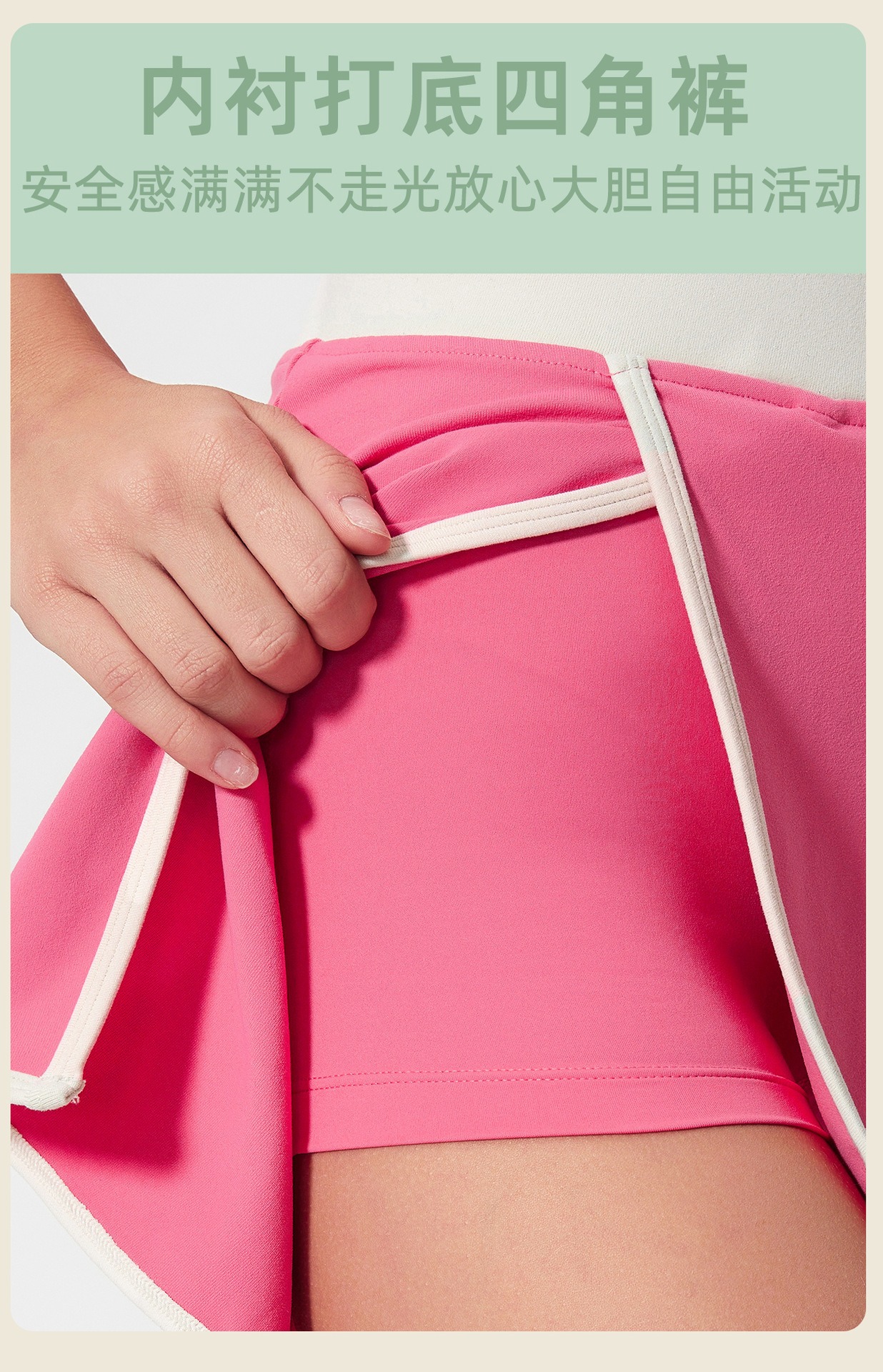 2025 ヌード通気性スポーツヨガスカート女性の偽ツーピース露出防止 A ラインスカート屋外フィットネステニススカート