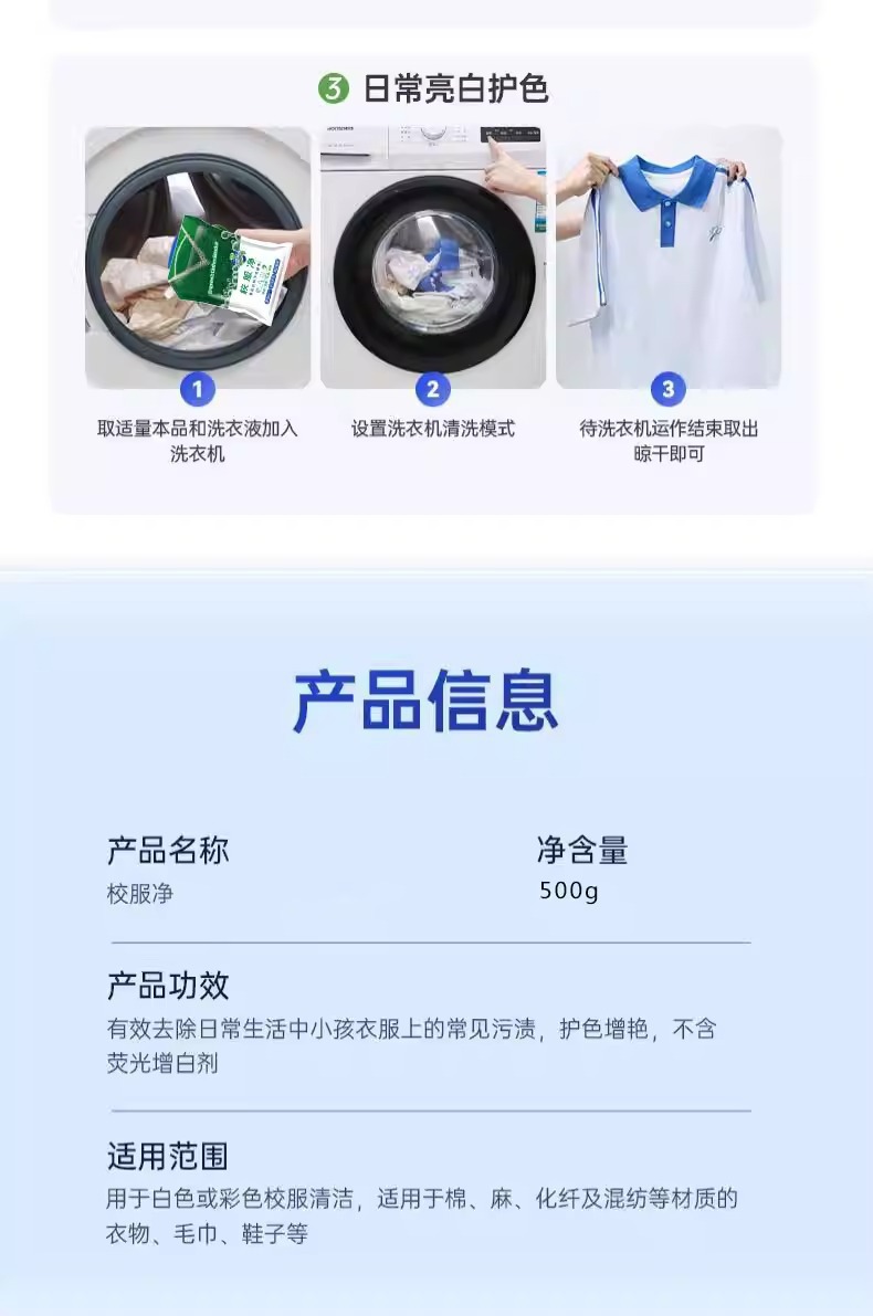 校服净大桶洗校服去污渍神器强洗衣粉白衣服去黄洗校服活氧去污油