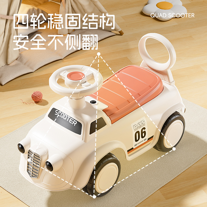 工場直送の子供用レトロカー、サイレントスクーター、1歳から3歳までの男の子と女の子向けの四輪スクーター、ツイストカー
