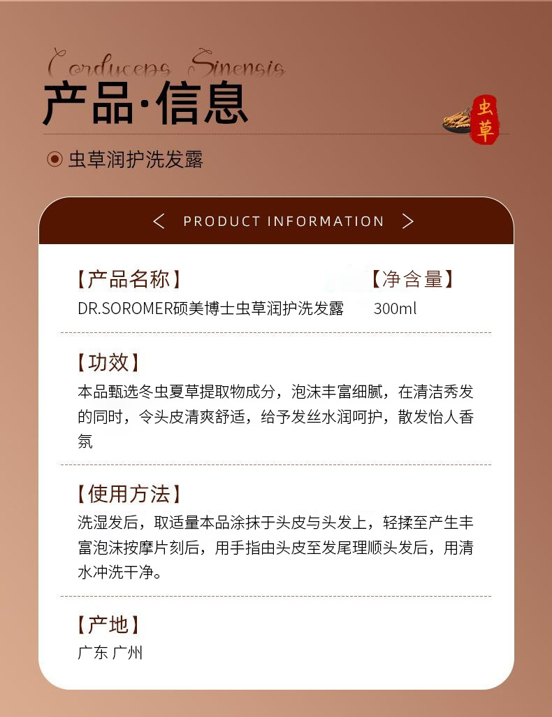 Dr. Shuomei 冬虫夏草保湿シャンプー 300ml 栄養を与える毛根ケア髪オイルコントロール保湿シャンプー