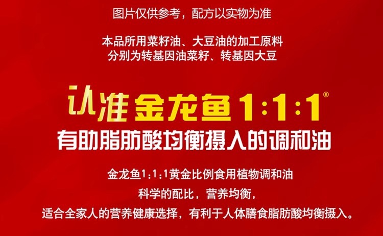 金龙鱼比例食用植物油调和油4L家用桶装4升1比1比1食用油