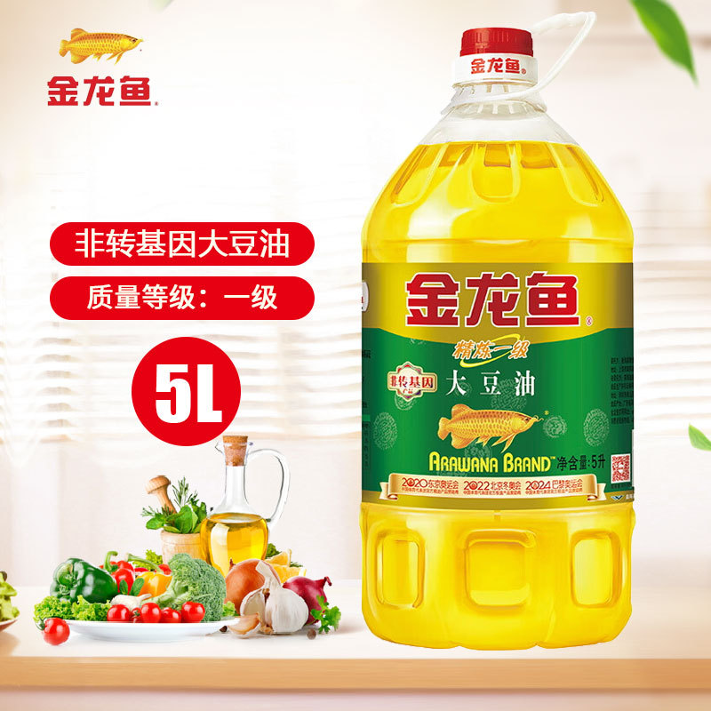金龙鱼非转基因精炼一级大豆油5L/桶食用油优质大豆油色拉油
