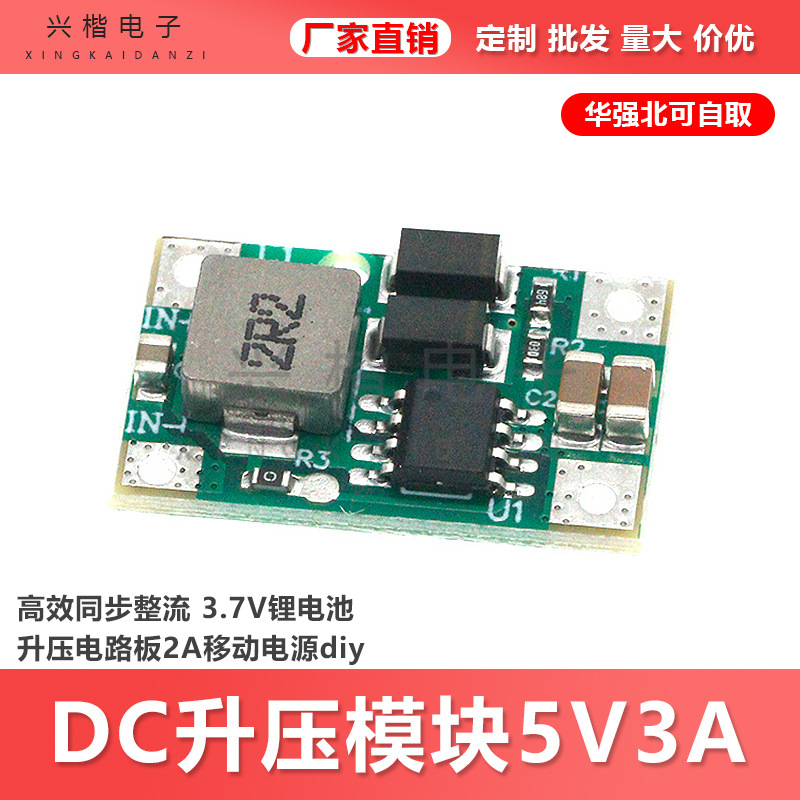 - 带有EN使能端,将模块上R3电阻拆掉以后,EN即为使能引脚,逻辑为高有效(开启升压)低关闭升压(低功耗待机,电流小于1uA)。高电平不可超过5V,低电平不可低于-0.2V。