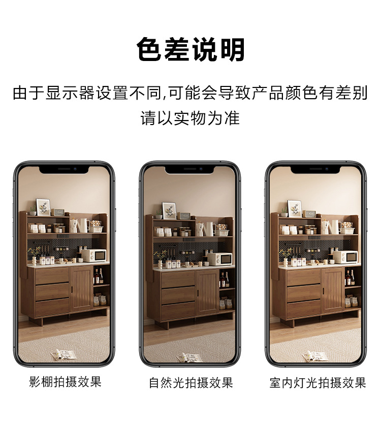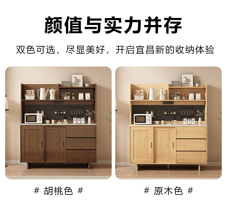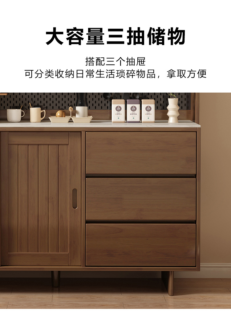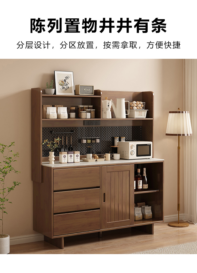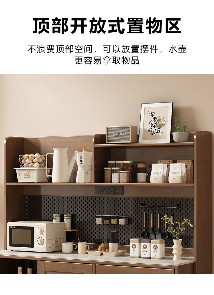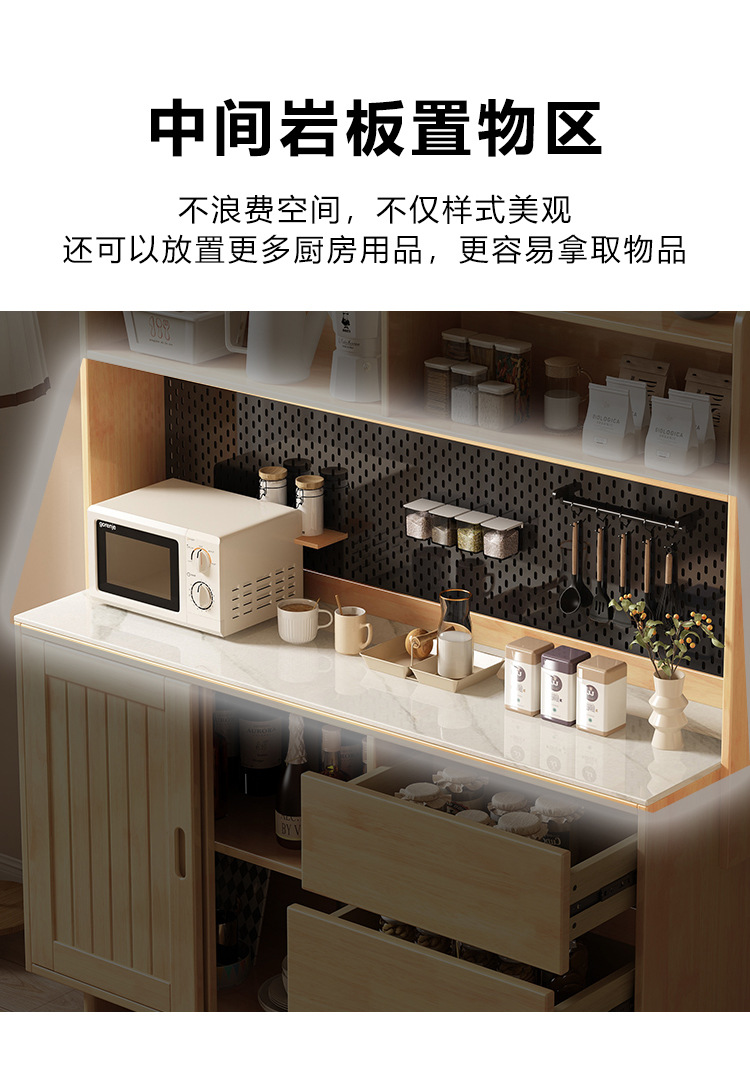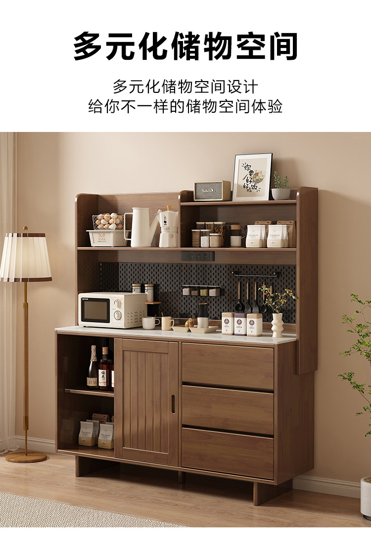 全实木岩板餐边柜靠墙一体现代简约厨房储物柜收纳柜置物柜茶水柜