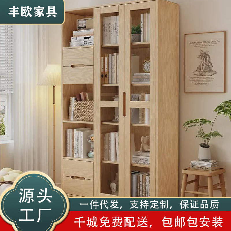 北欧風ホワイトワックスウッド無垢材本棚、家庭用フロア収納キャビネット、リビングルーム多層本棚収納キャビネット、ワンピースドロップシッピング