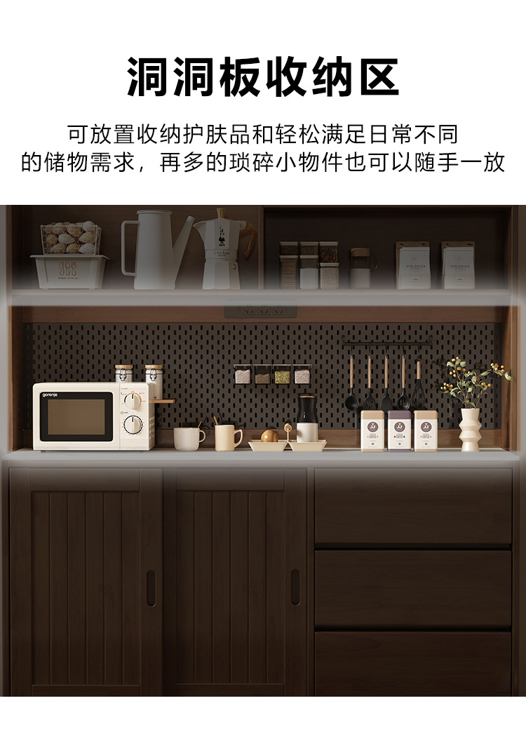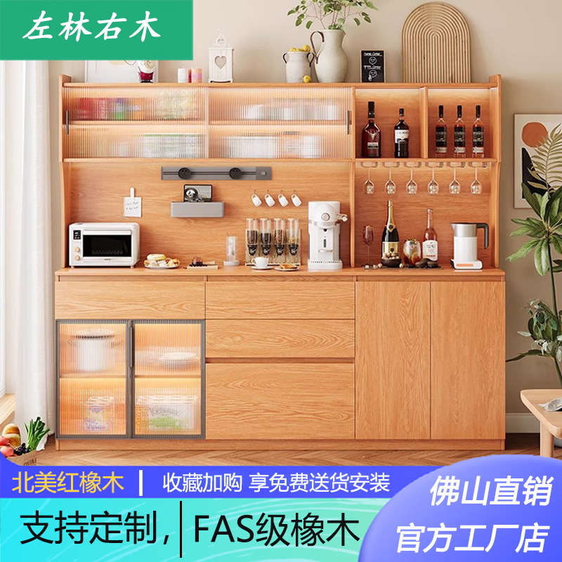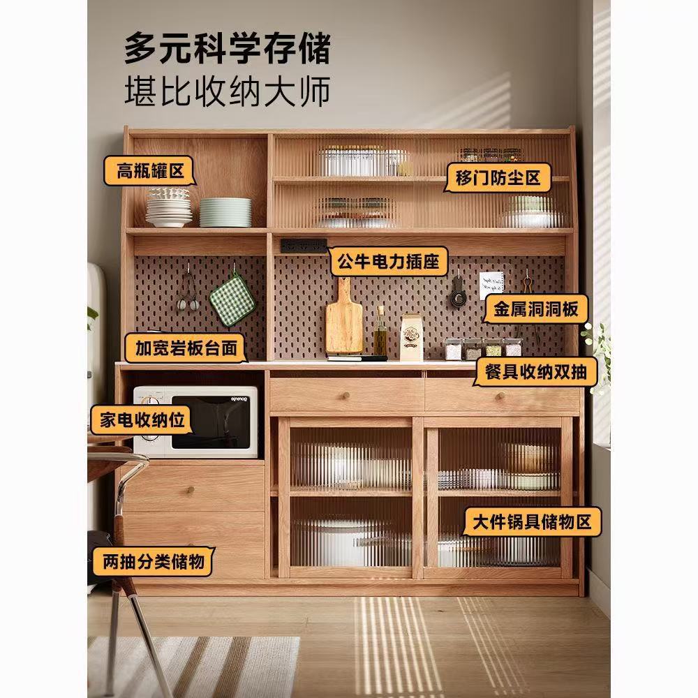 木立森实木橡木餐边柜酒柜一体餐厅小户型茶水柜家用厨房储物柜子