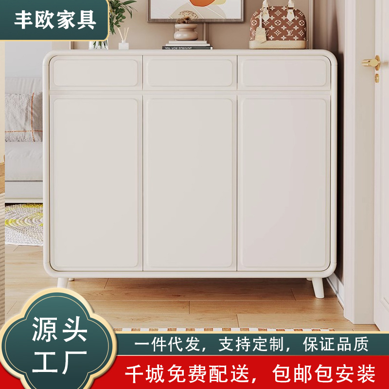 北欧無垢材靴キャビネットクリームスタイル家具ホームエントランスキャビネット大容量靴キャビネットパーティション収納キャビネット白