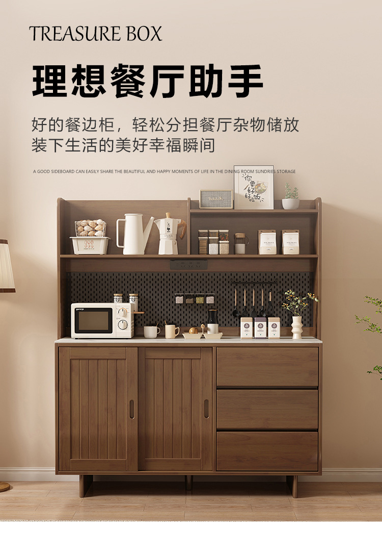 实木餐边柜一体靠墙岩板现代客厅酒柜茶水柜多功能厨房储物收纳柜