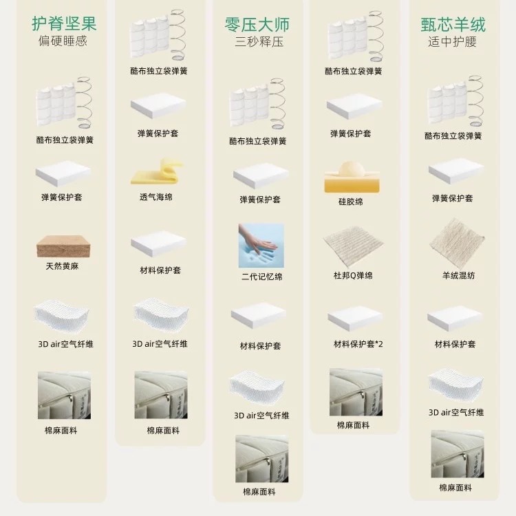 ゼロプレッシャーマスターは約24CM [中程度から柔らかい],ナットリッジプロテクターは約24CM【硬めの寝心地】,静かな光の酸素は約24CM [適度な寝心地],裸の荒野は約24CM [適度なQボム],鎮新カシミヤは約24CM【適度な寝心地】