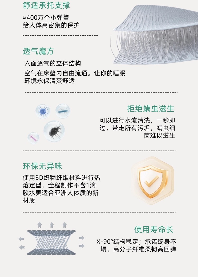 3D マットレス取り外し可能で洗える高反発通気性エアファイバー脊椎保護マットレス完全に分解して洗える家庭用メーカー卸売