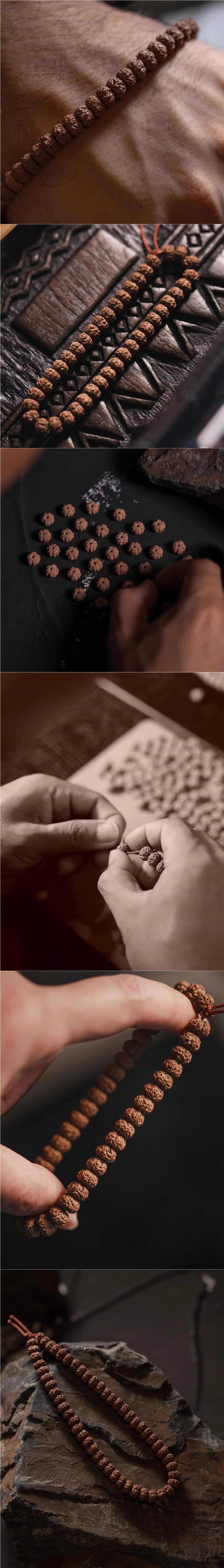 天然低杭【一世代・老樹王】平細二龍龍文様小金剛菩提108玉ブレスレット