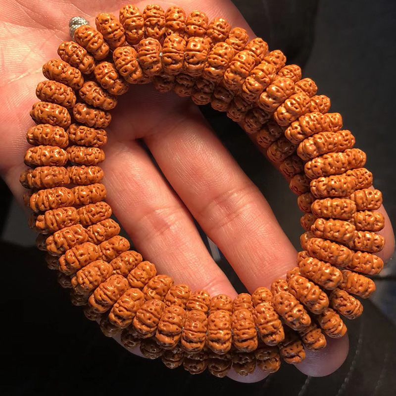 野生のモンキーヘッドブレスレット、彫刻された古いバレルビーズ、北京八角形の光のビーズ、クルミの文具、男性と女性のためのシングルサークル仏ビーズブレスレット