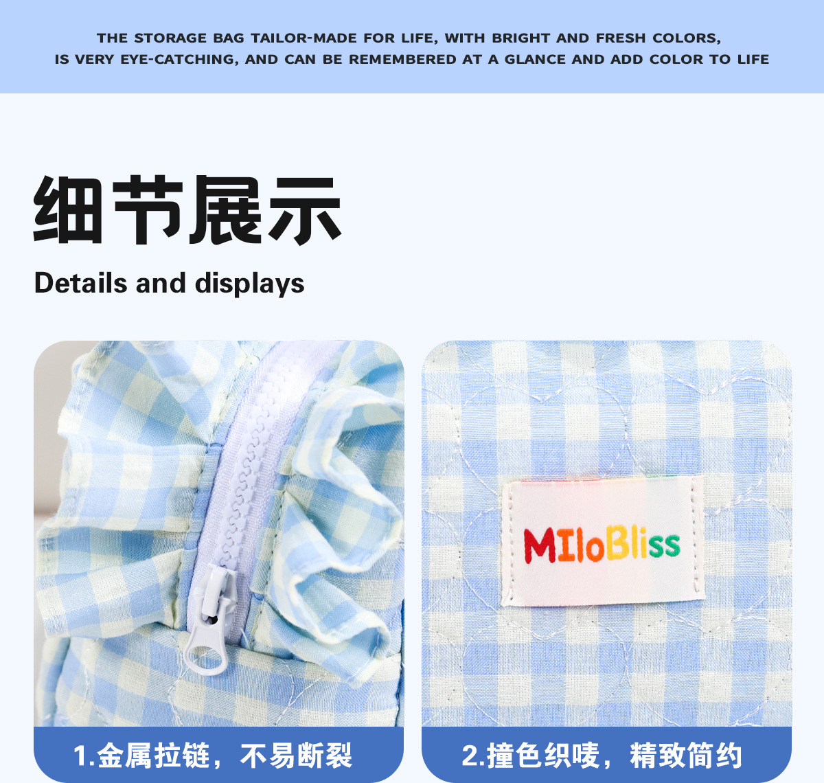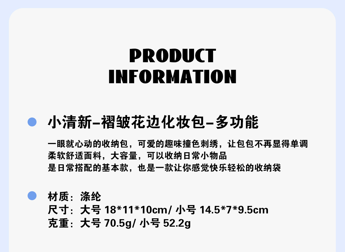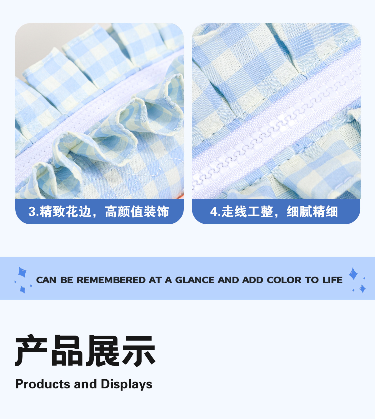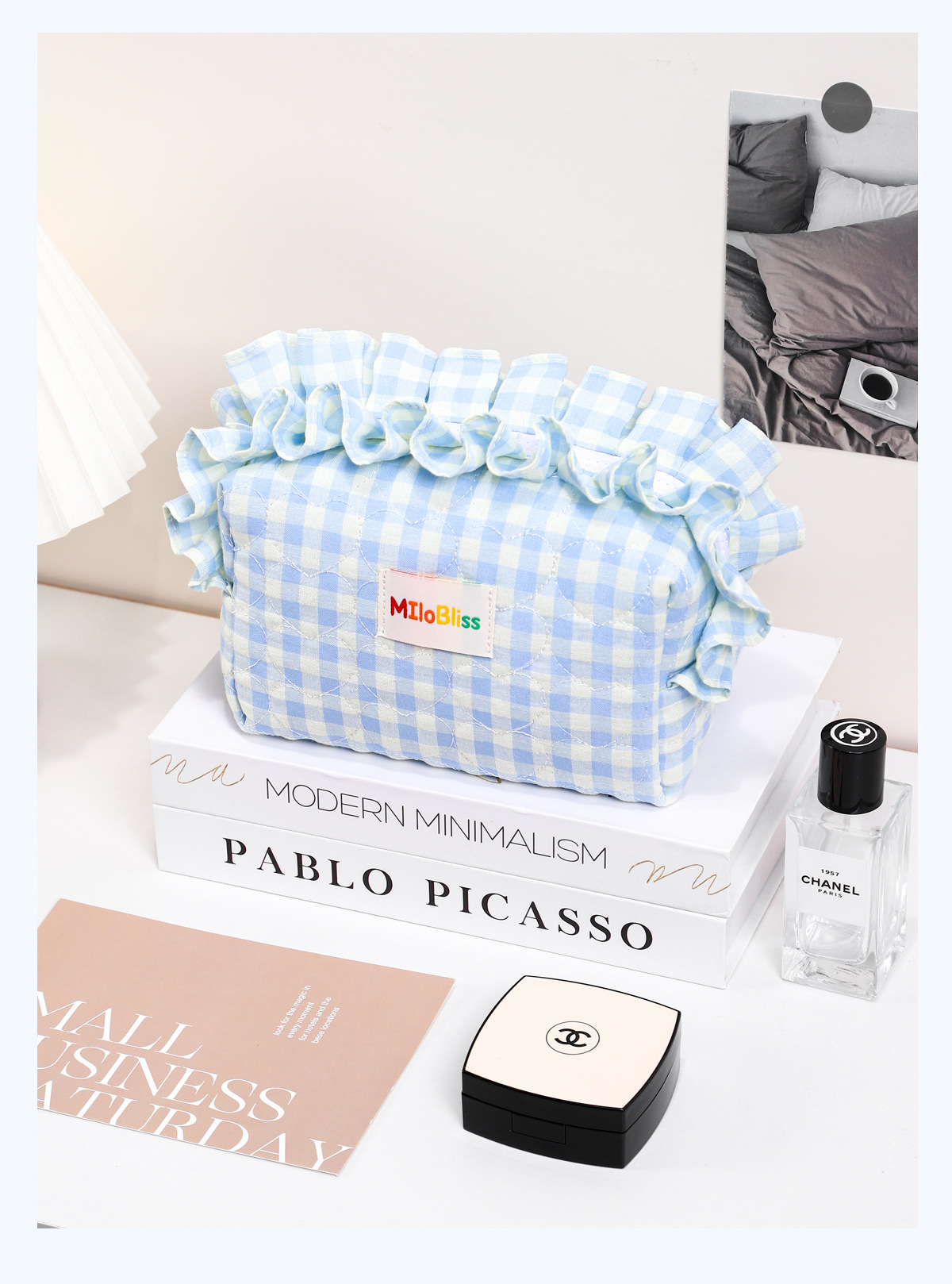 小清新荷叶边手提化妆包高颜值拼色格纹美妆包便携大容量收纳包
