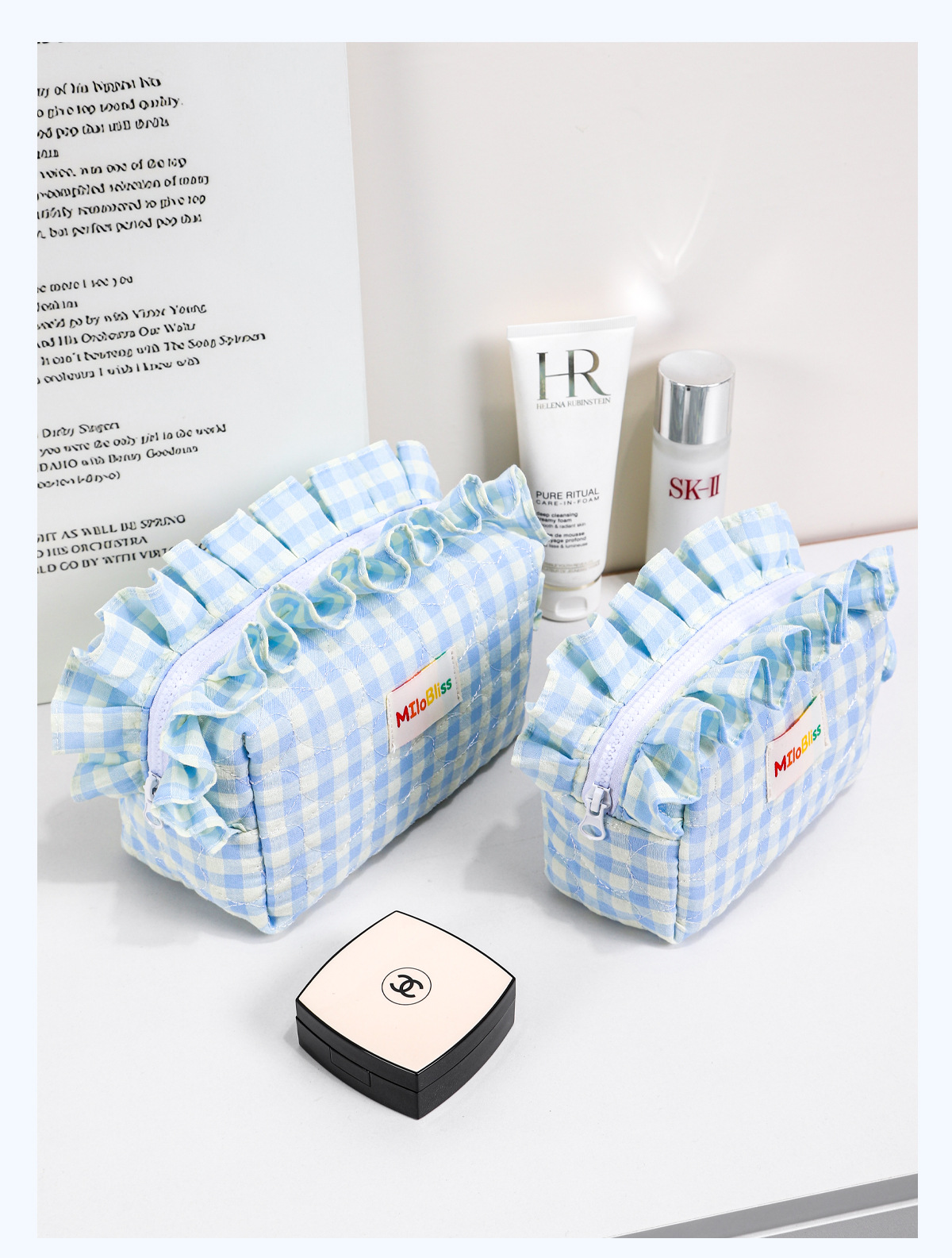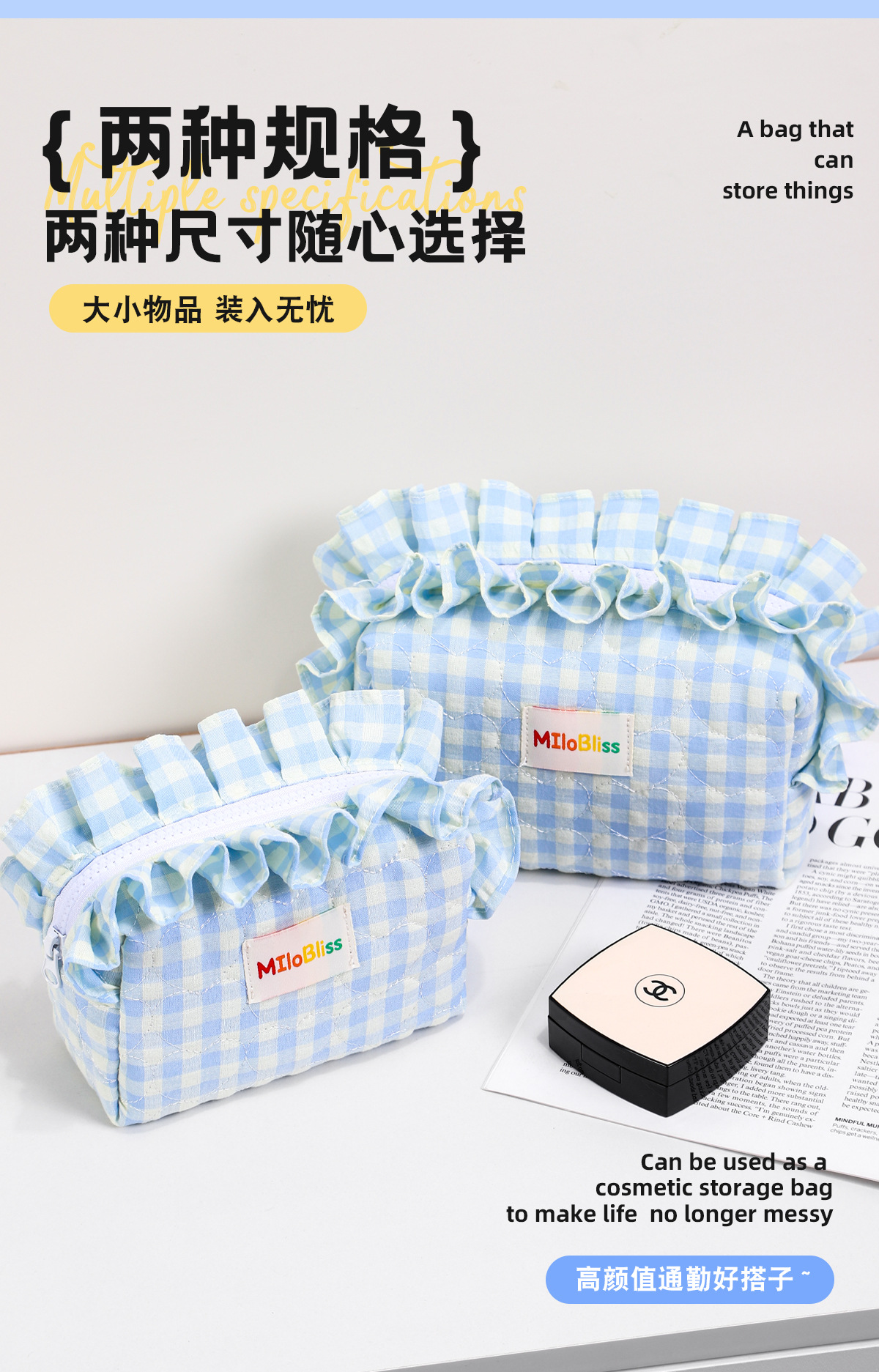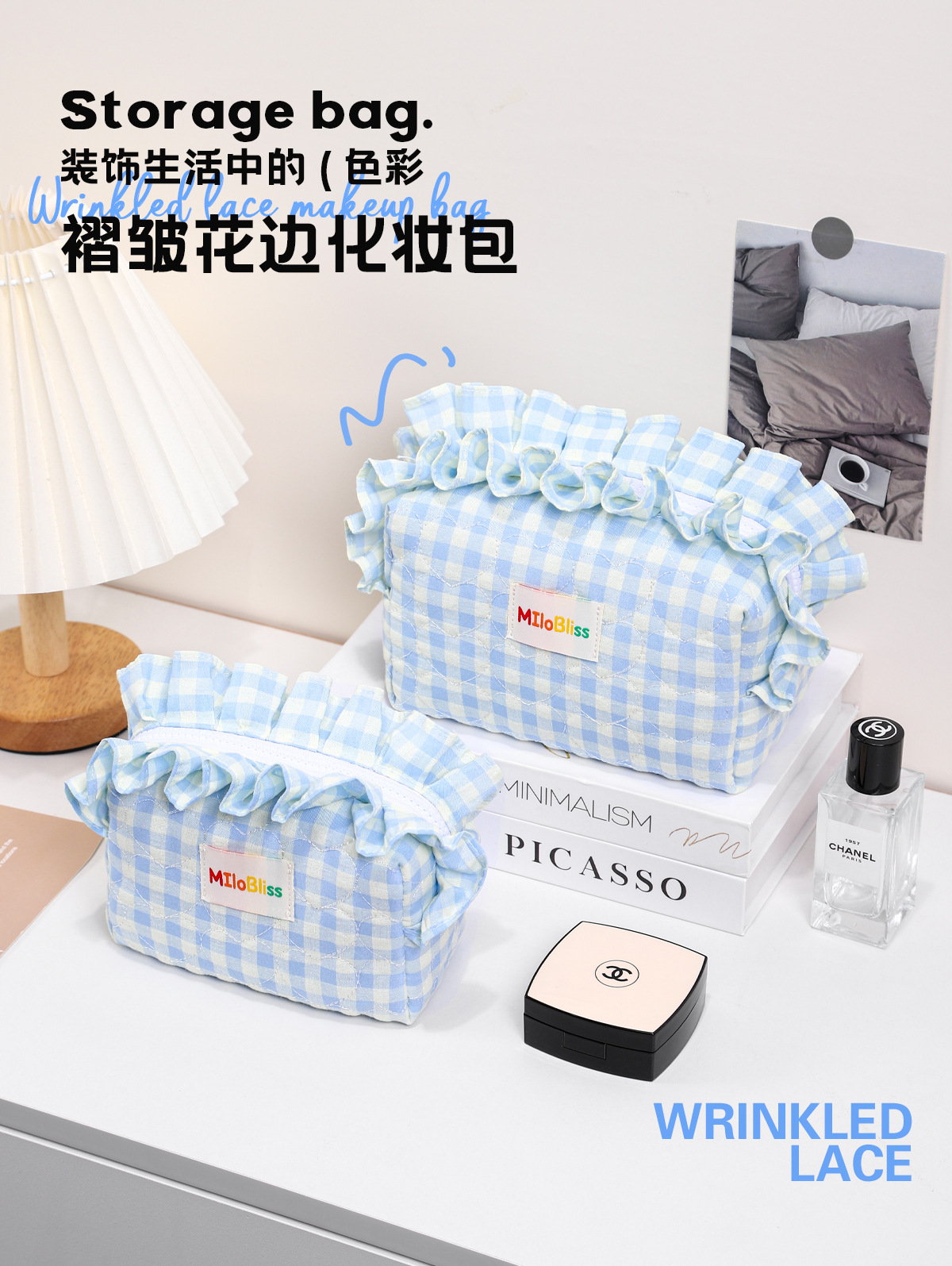 韓国の小さな新鮮なチェック柄の化粧品袋、大容量のレースの化粧品収納袋、見栄えの良い甘い化粧品袋