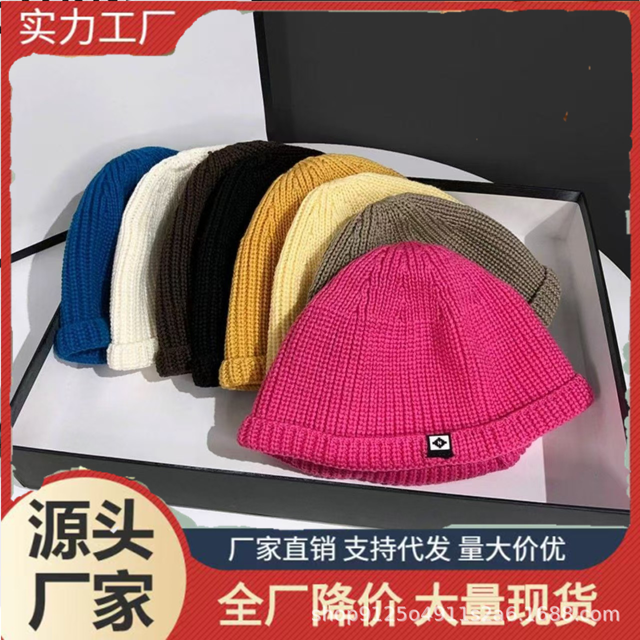 毛线瓜皮帽秋冬纯色ins风男女百搭嘻哈圆顶针织帽子外贸街头冷帽