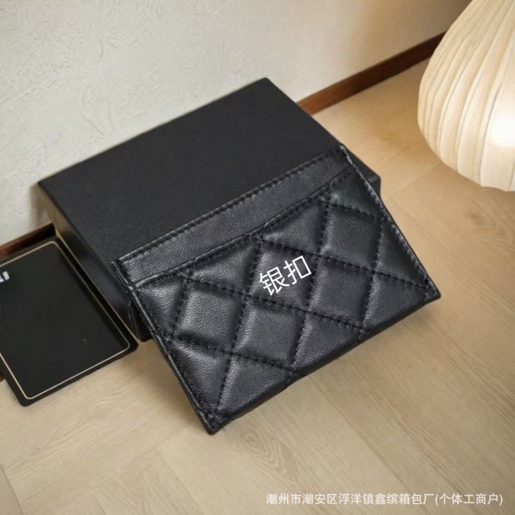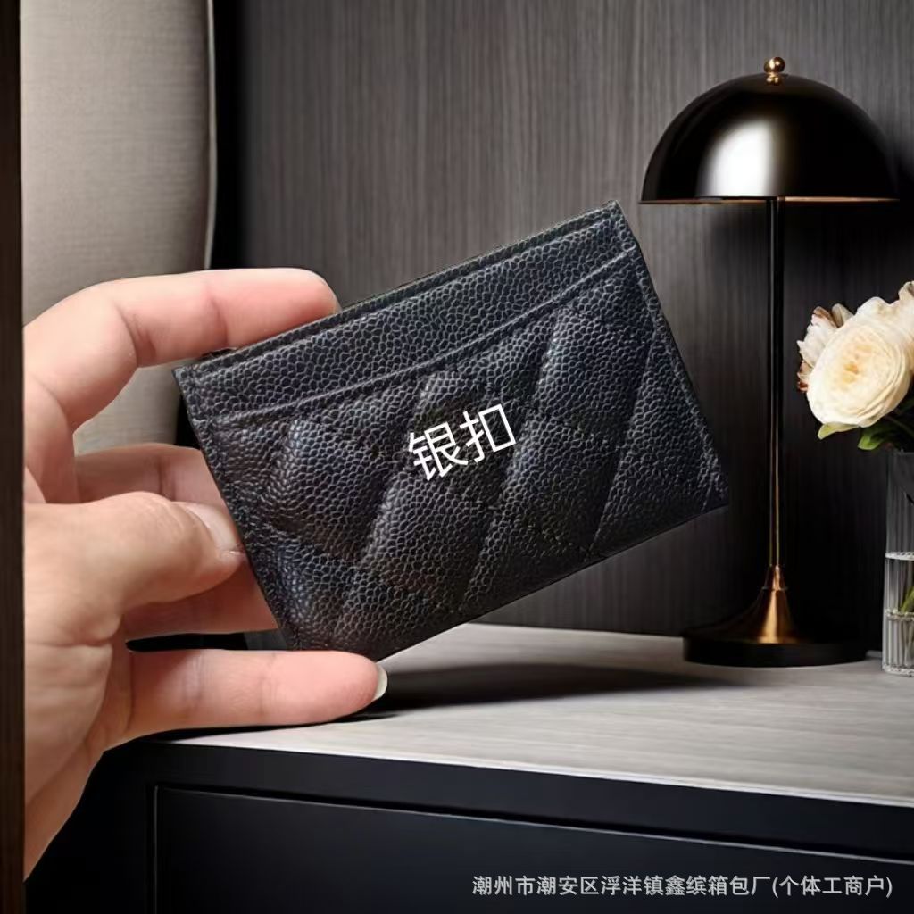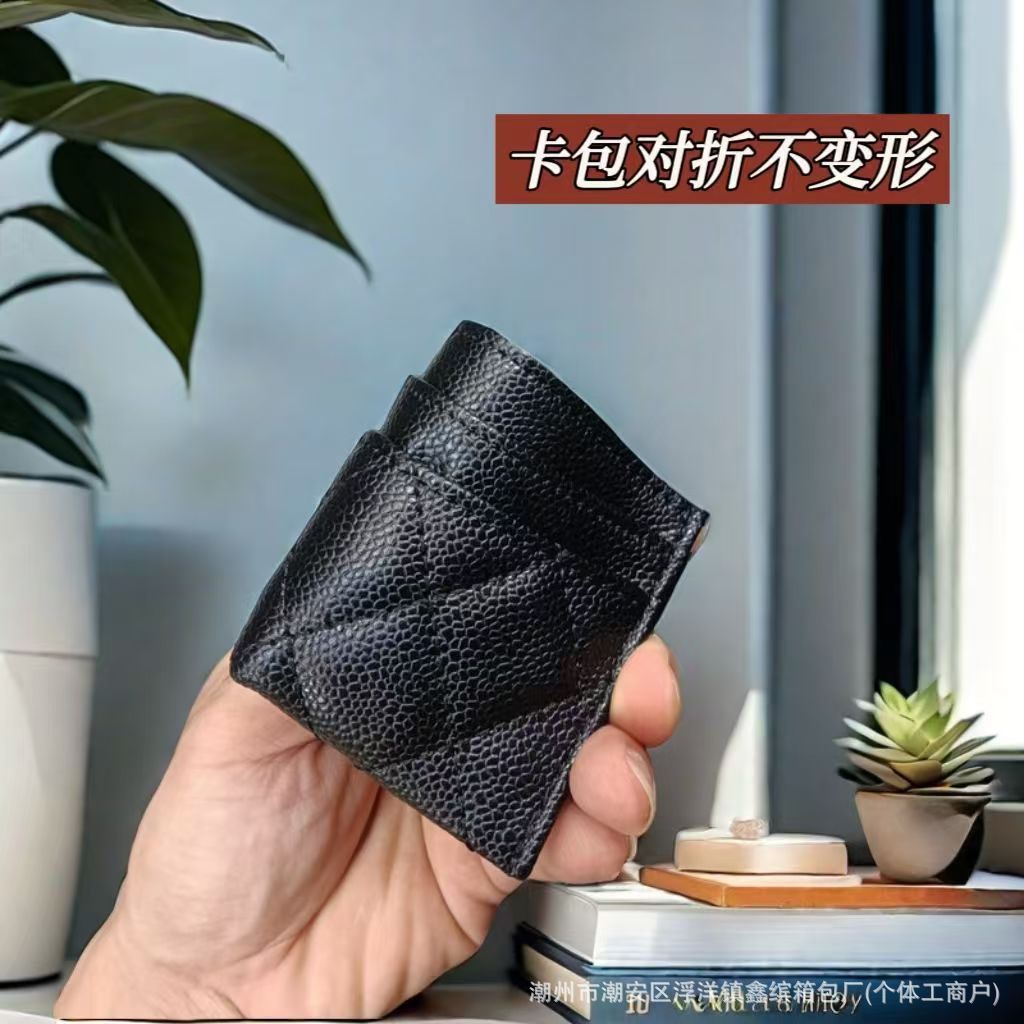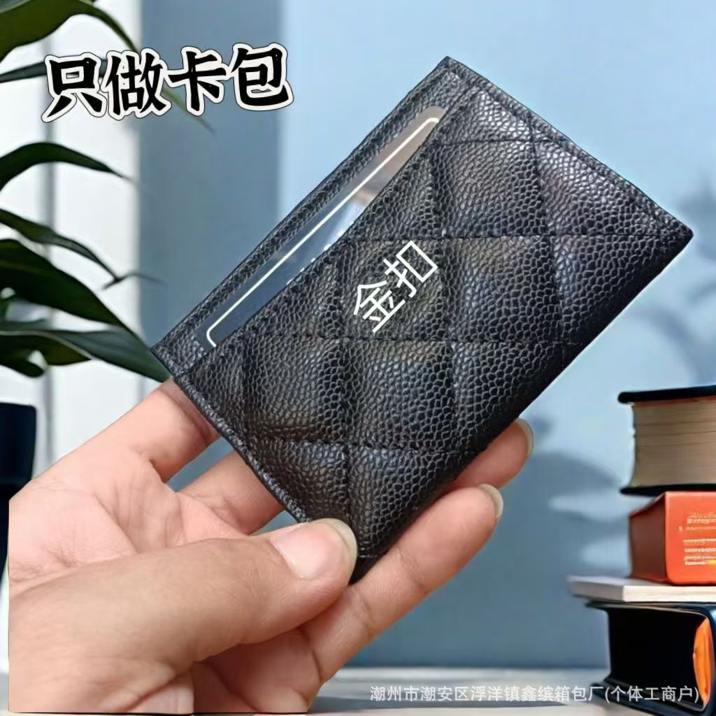 2025小香风卡包菱格薄款CF小香鱼子酱牛皮羊皮菱格真皮卡夹经典款