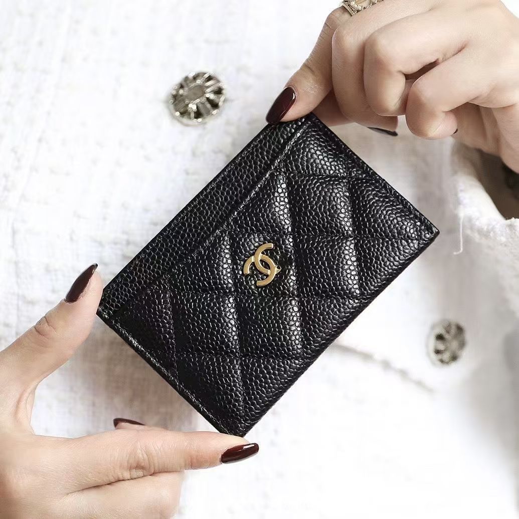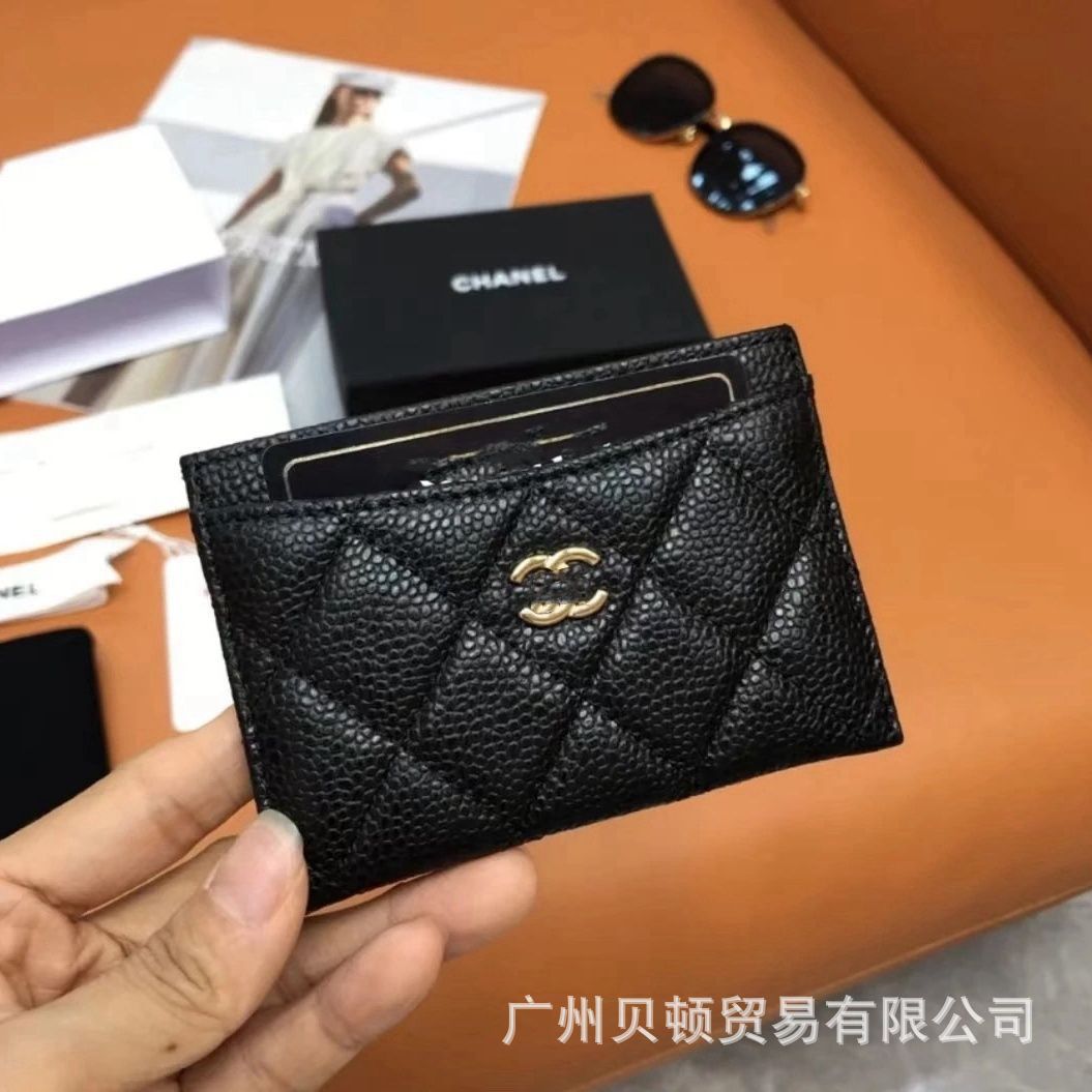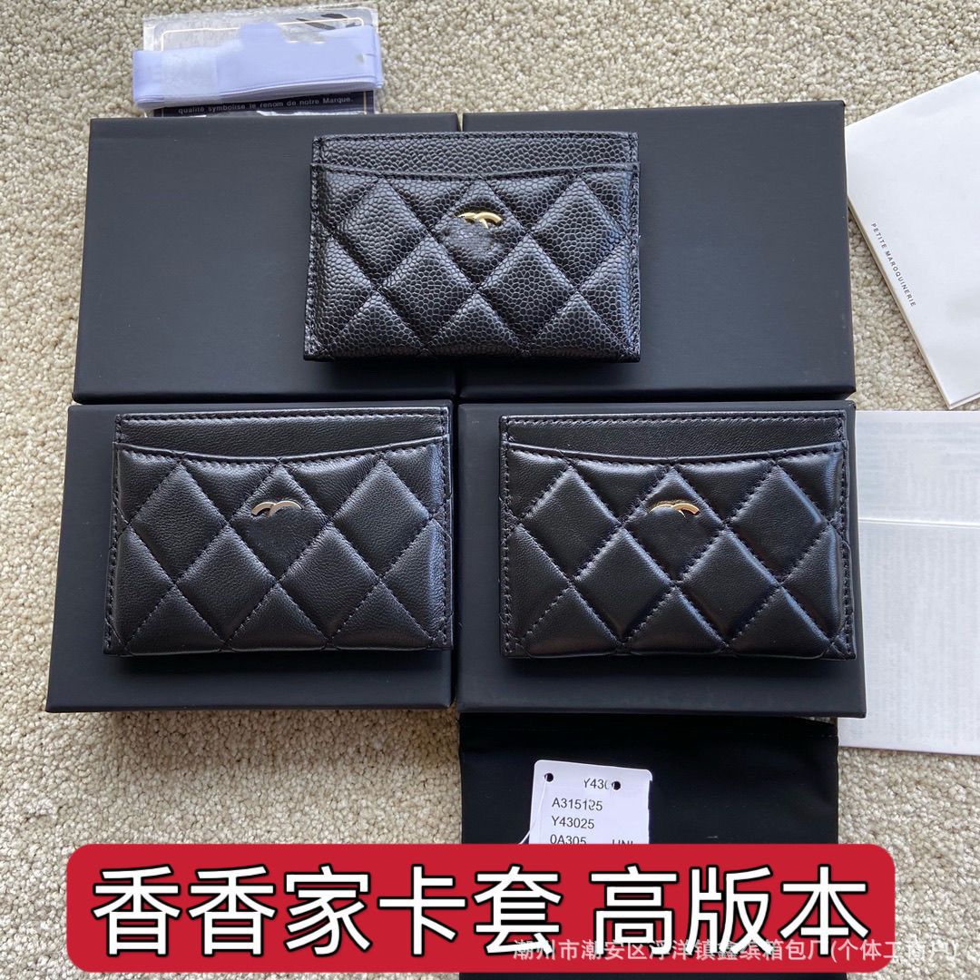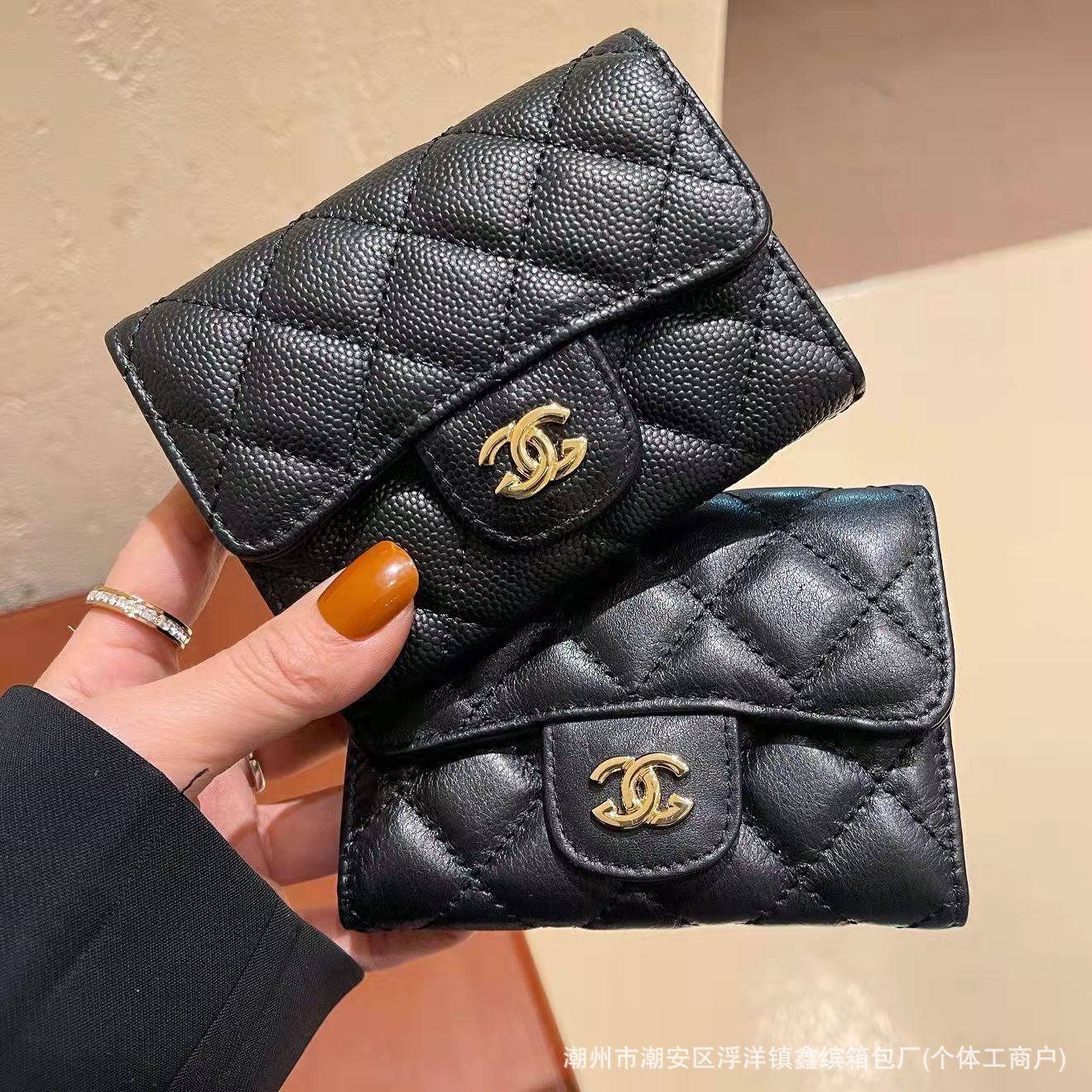 2025小香风卡包菱格薄款CF小香鱼子酱牛皮羊皮菱格真皮卡夹经典款