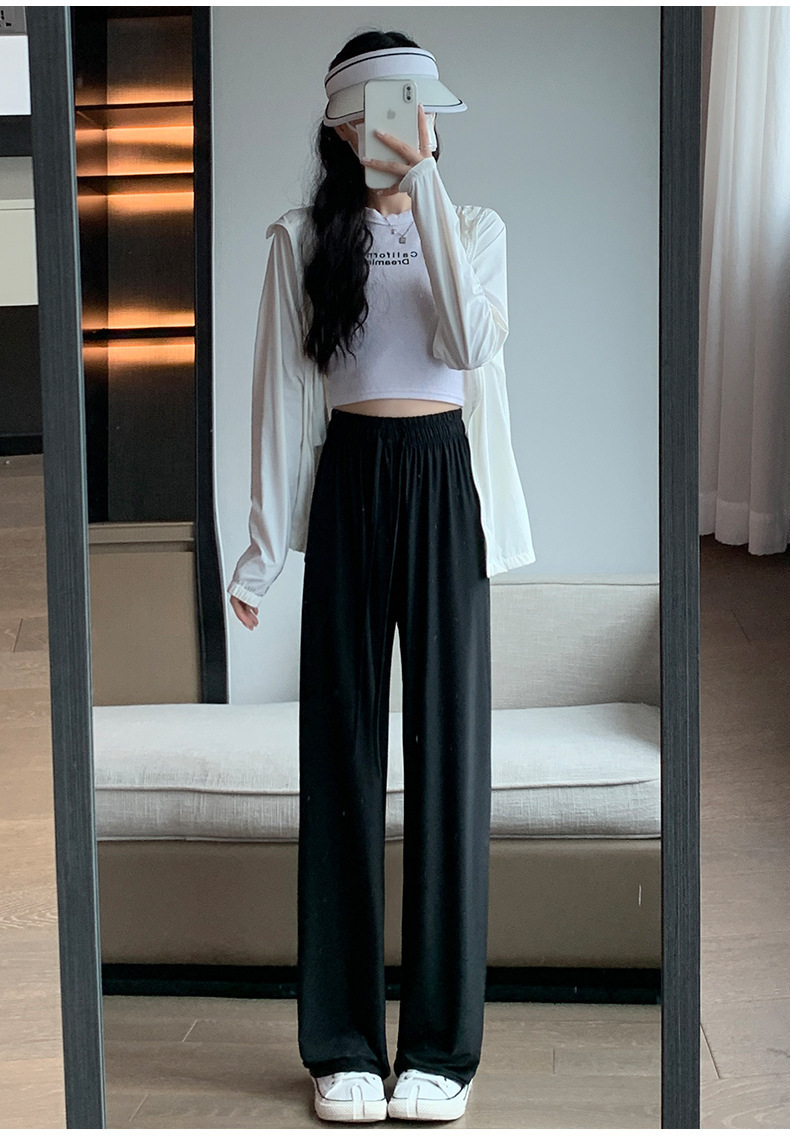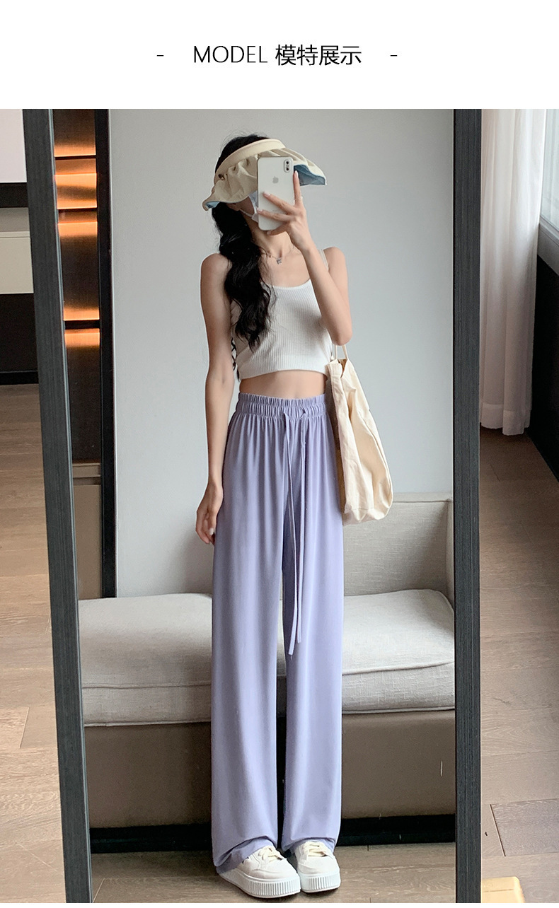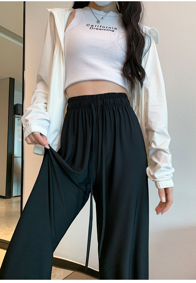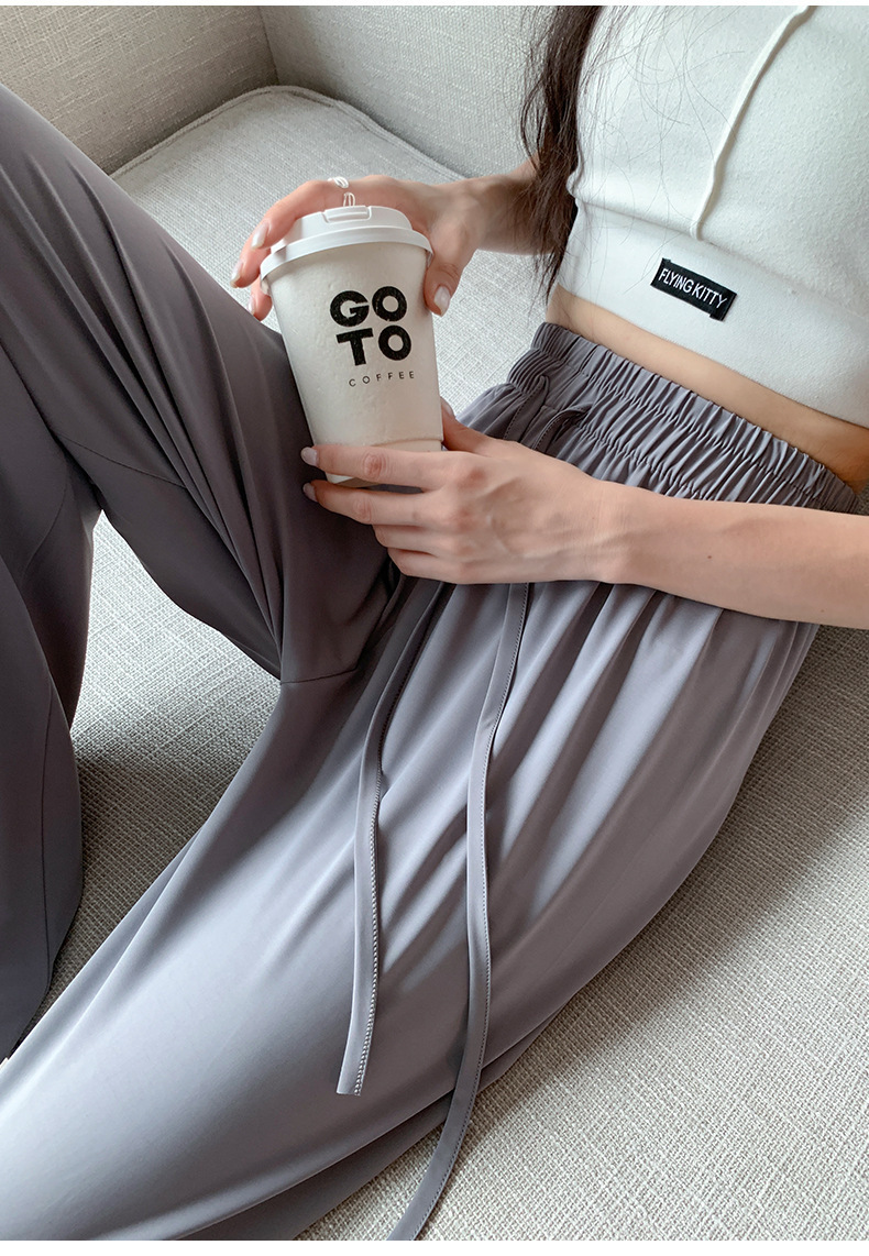 氷の糸の広腿のズボンの女性の夏の薄いタイプの高腰のペンダント感の学生のカジュアルなズボンはやせていてゆったりしています。