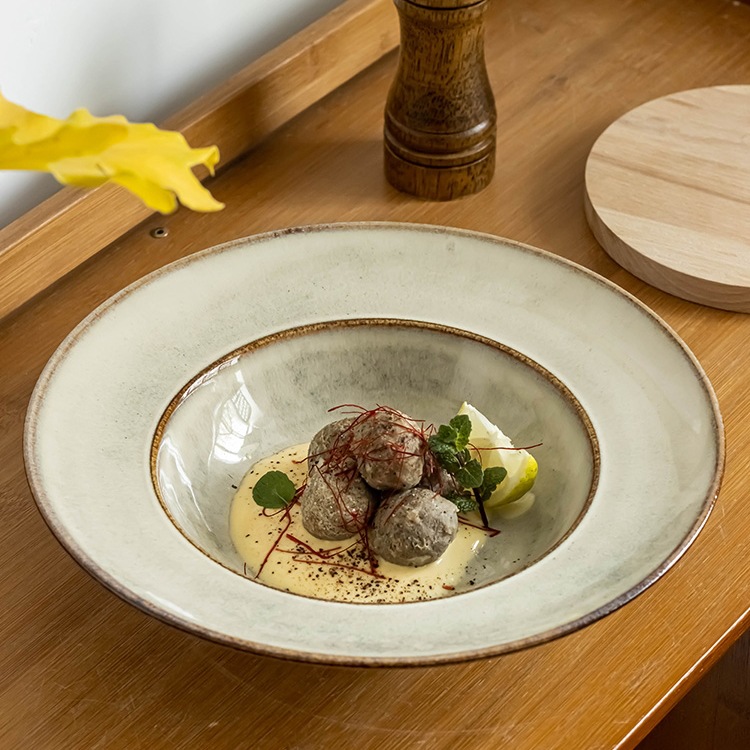 Jianshanji レトロシンプル麦わら帽子ボウル高価値食器セラミック洋食デザートボウルパスタボウル野菜ボウルサラダボウル