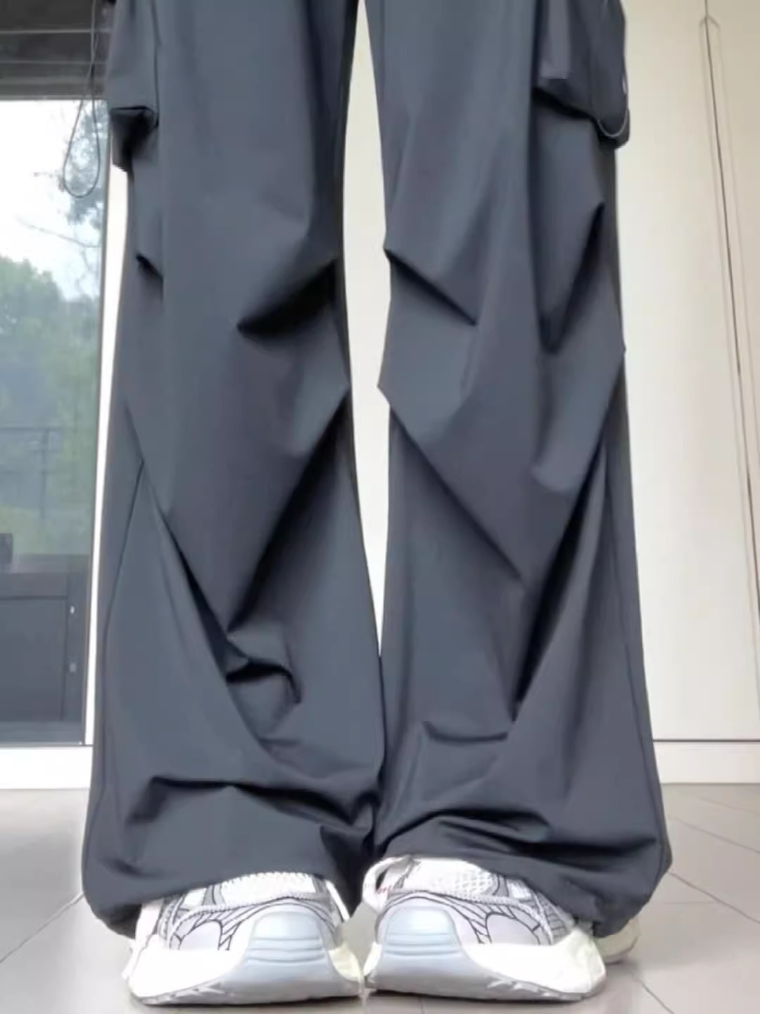 アメリカ風パラシュートパンツ レディース 2025秋冬新作 ゆったりストレート ストリート系ポケット付き レディースワイドレッグカジュアルパンツ