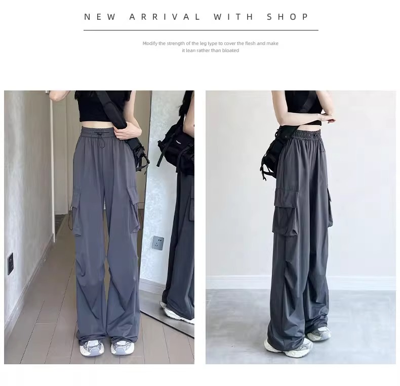 アイスシルク速乾性スポーツパンツ女性のための 2025 夏薄いルーズ痩身ドレープハイウエスト作業服ストレートワイドレッグパンツ女性のための