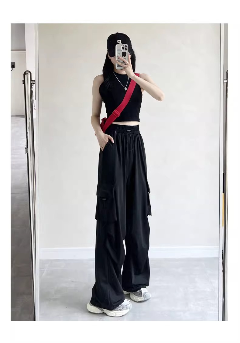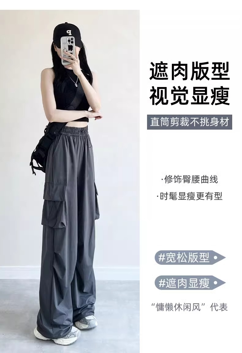 工装裤女款2025夏季新款高腰宽松垂感显瘦速干薄款运动阔腿裤子潮